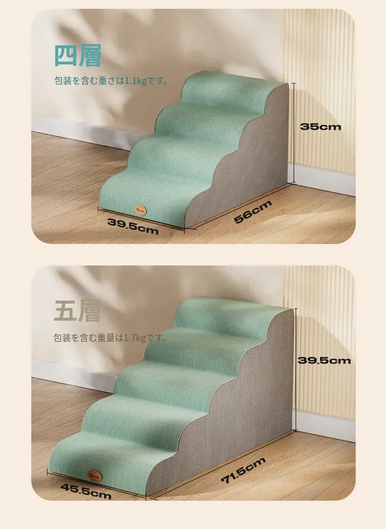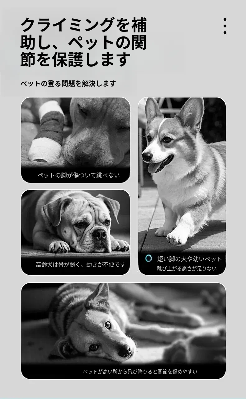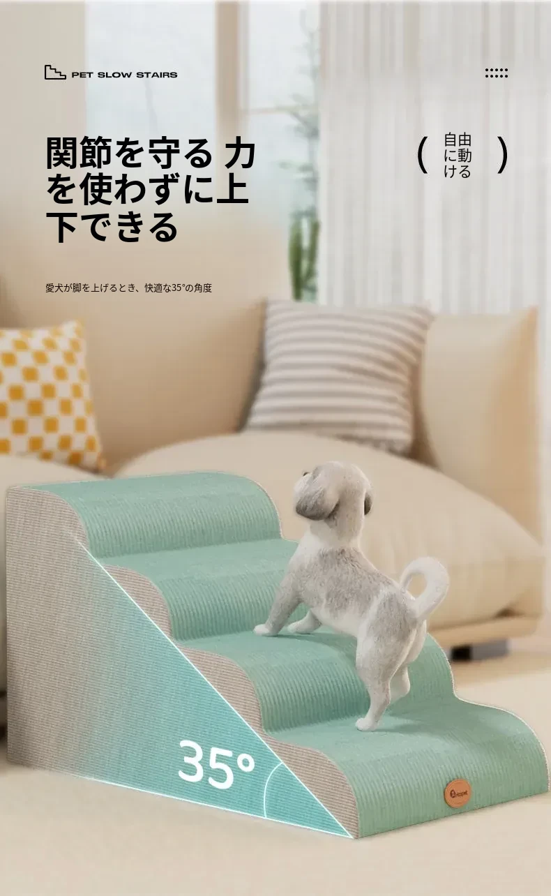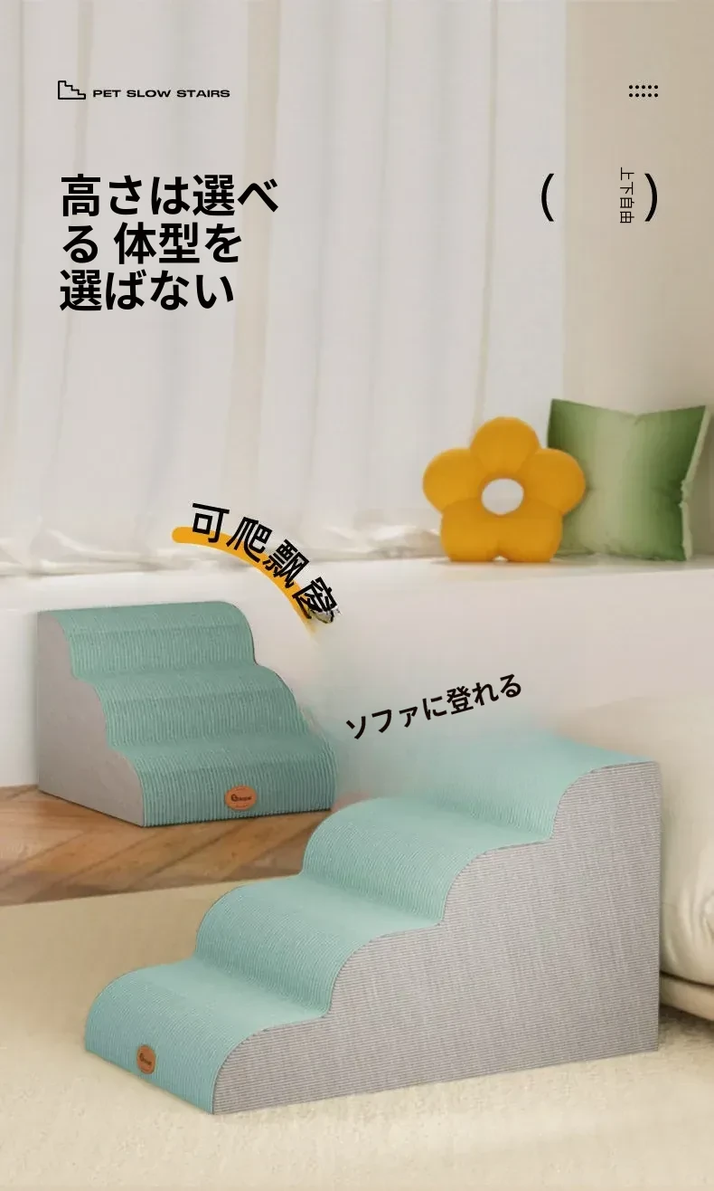 ペット用階段スロープ - 小型犬や老犬が楽にベッドやソファに上がれる便利なステップ!安全で安定した設計で、愛犬の生活をもっと快適に。