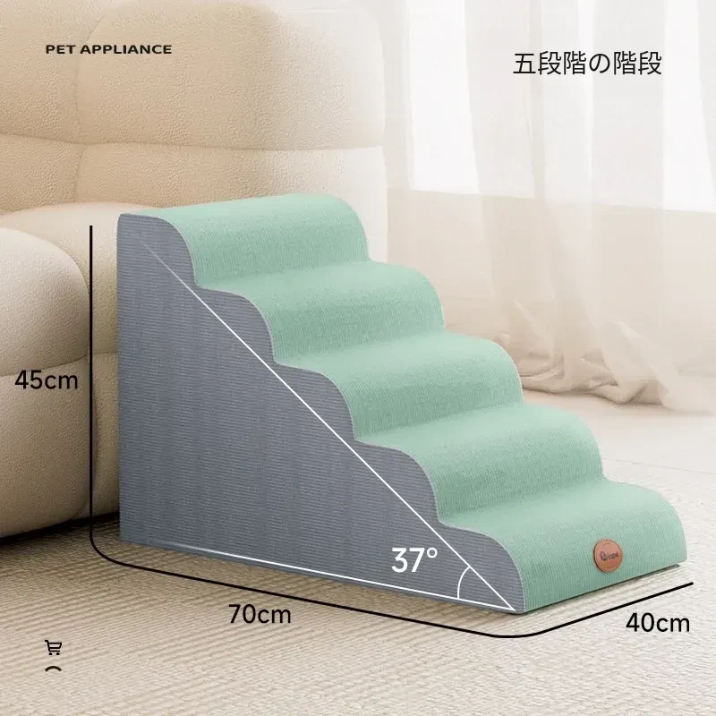 ペット階段 犬用階段(5段 緑色) 【高さ45cm 角度37°】