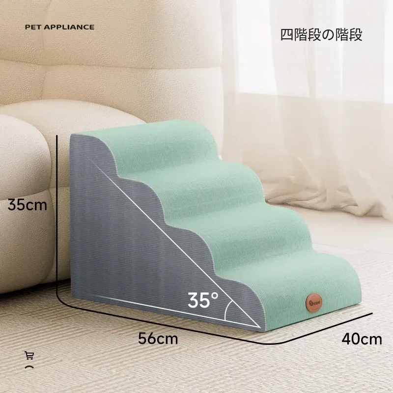 ペット階段 犬用階段(4段 緑色) 【高さ35cm 角度35°】