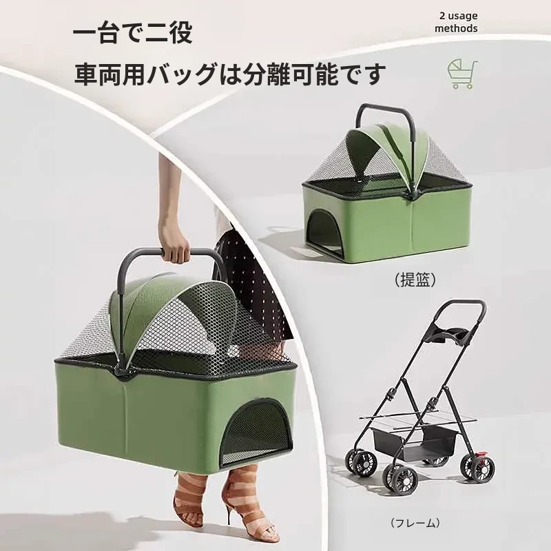 【フォレストグリーン】前輪万向 可猫バッグとして使用可