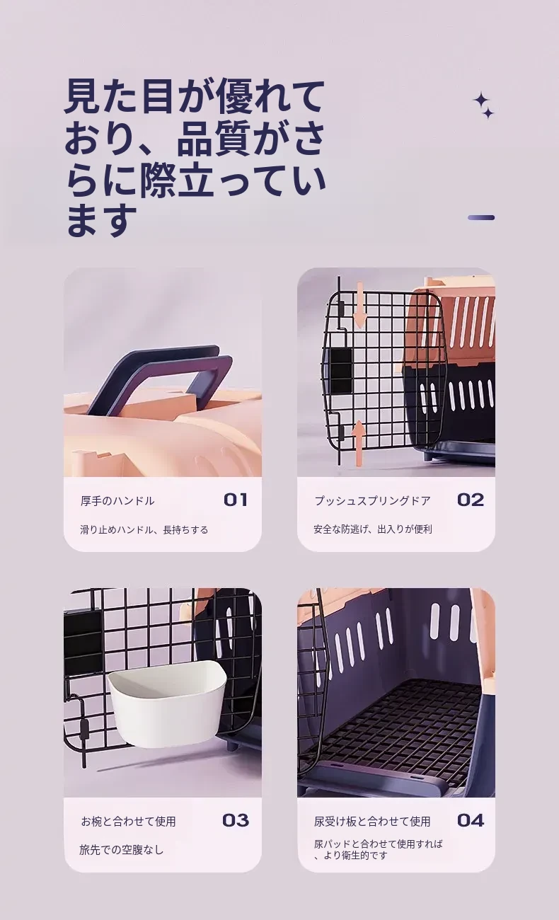 猫ちゃん用キャリーケース - 外出に便利なペット輸送ボックス!小型・中型犬にも対応、安心して移動できる設計。愛するペットと一緒にお出かけを楽しもう!