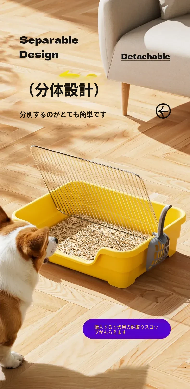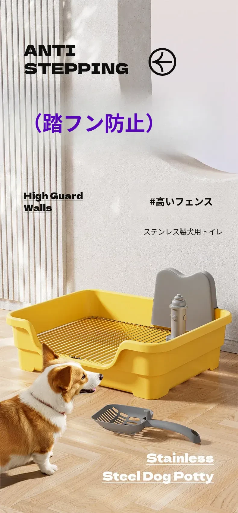 小型犬専用!おしゃれで清潔なステンレス製ペットトイレ - 飼い犬のための無駄な糞尿を防ぐ、安心・快適な定点トイレ!