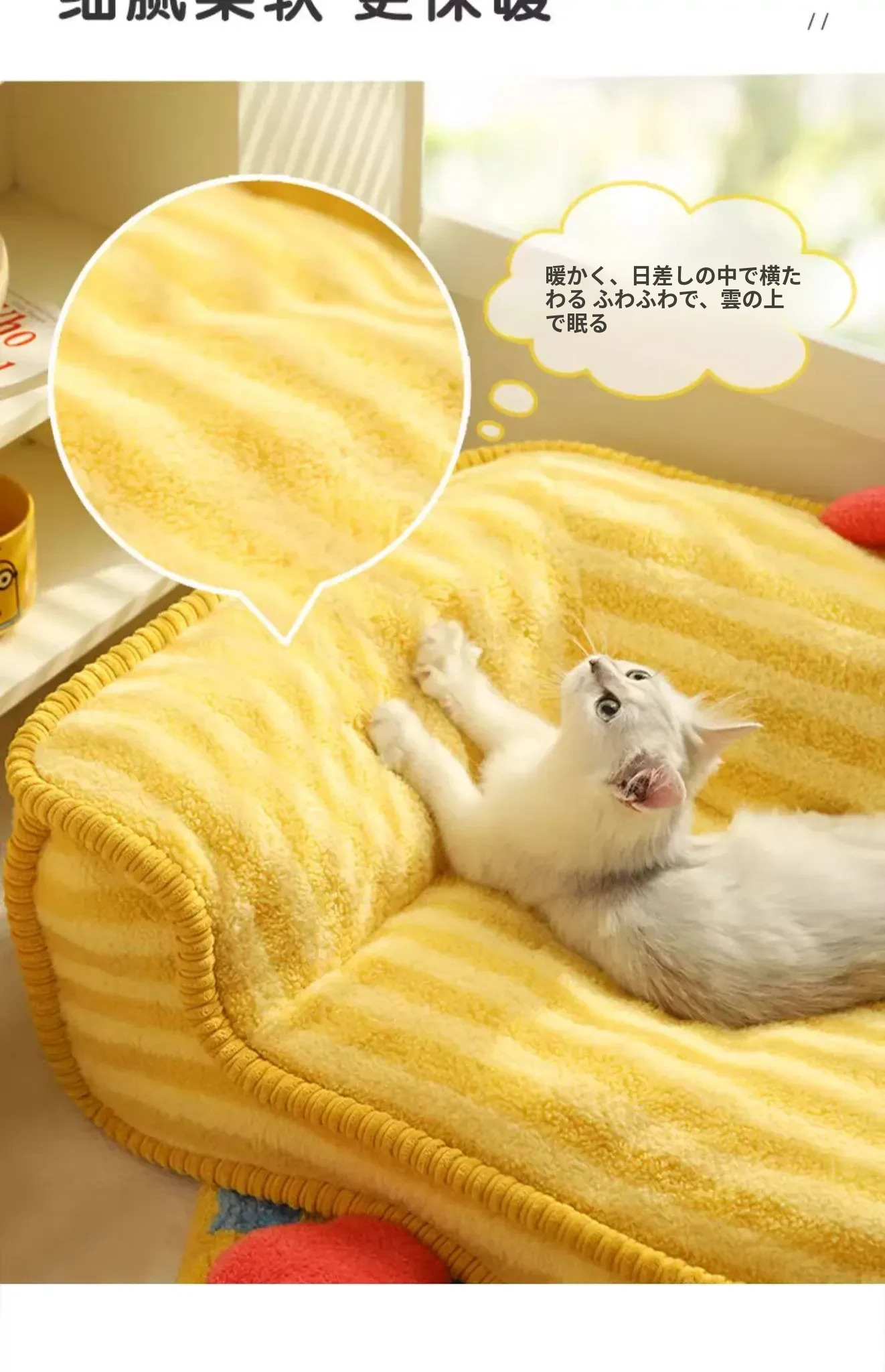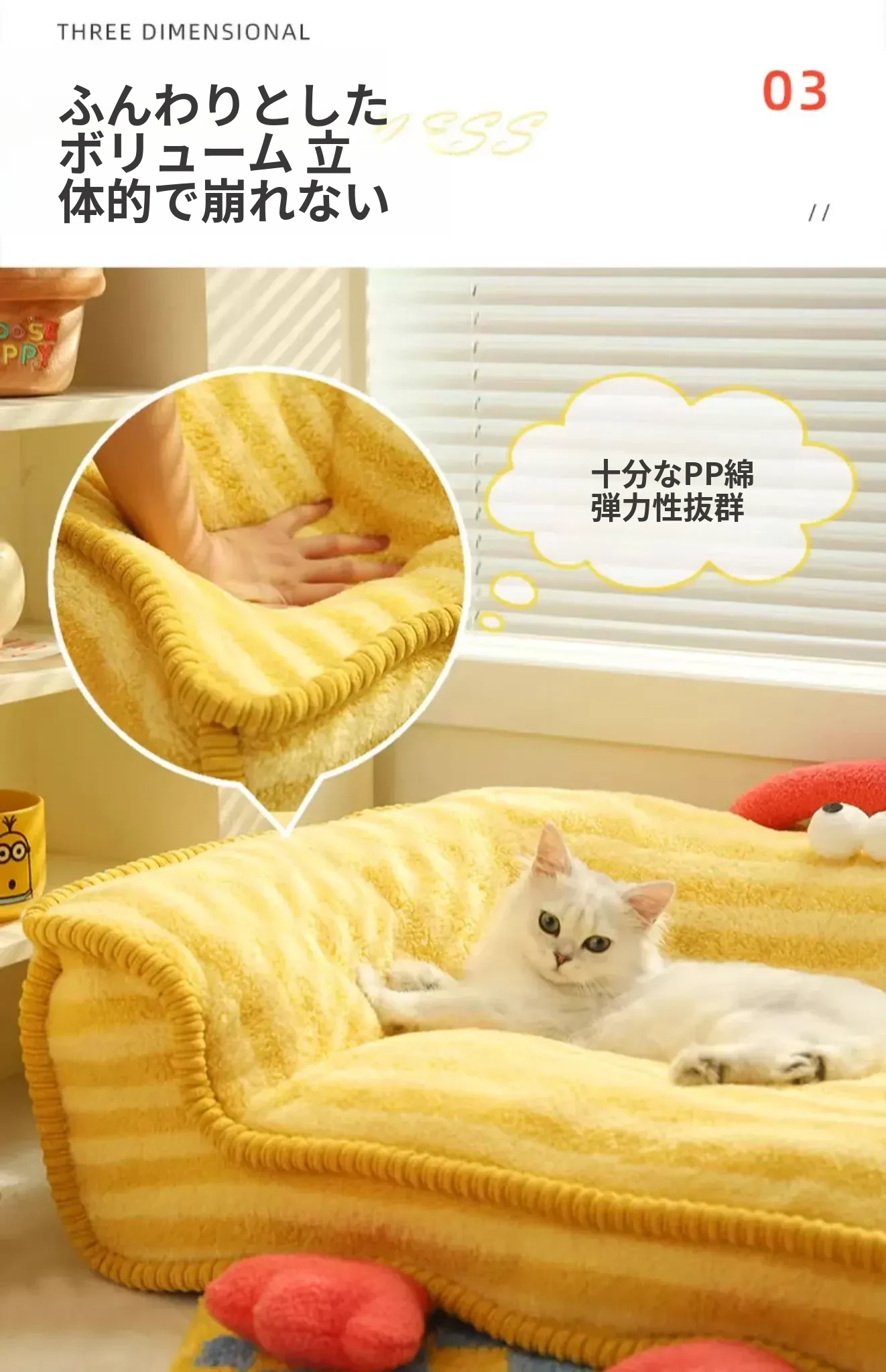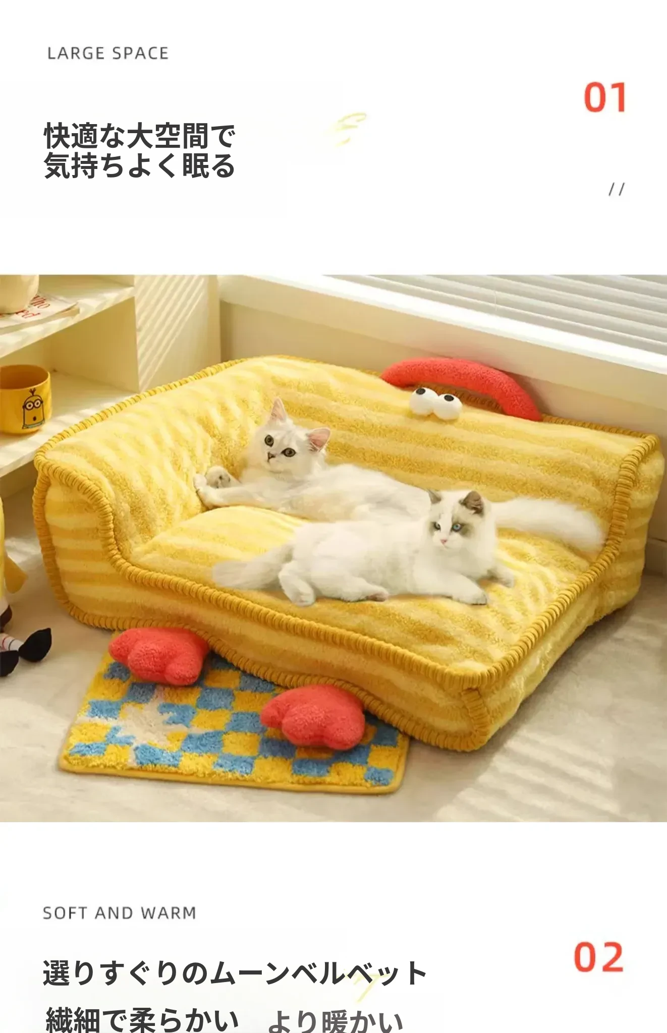 冬の寒さに最適!多頭飼い向け大サイズ猫ハウス - 暖かいペット用マットで、四季を通じて使える快適な猫ソファ気分をお届けします!