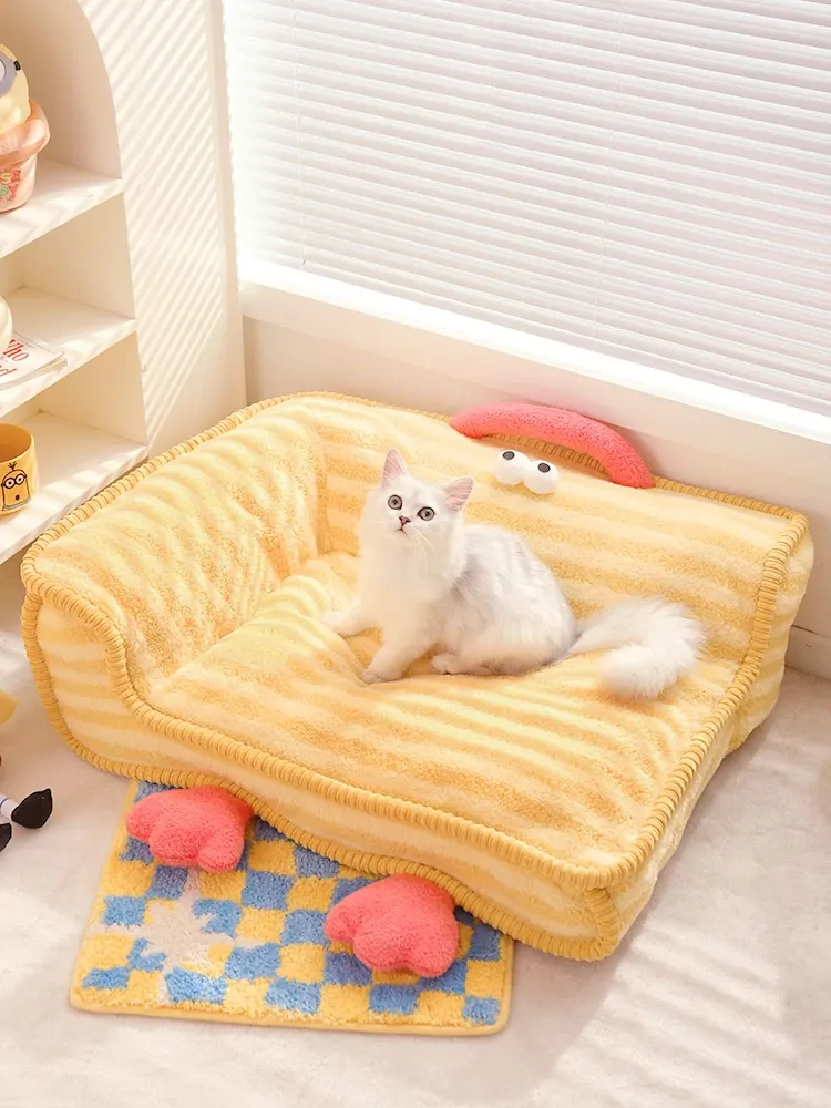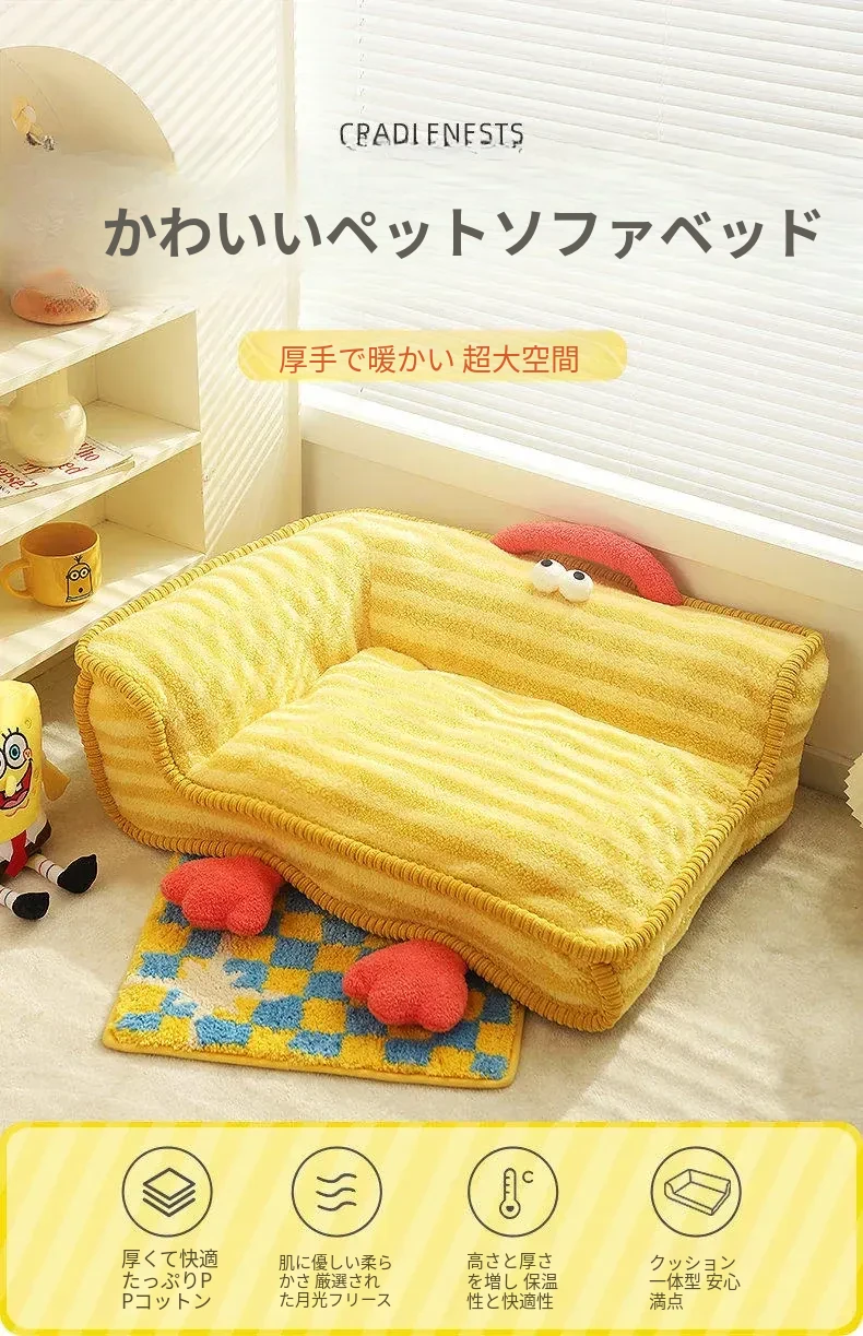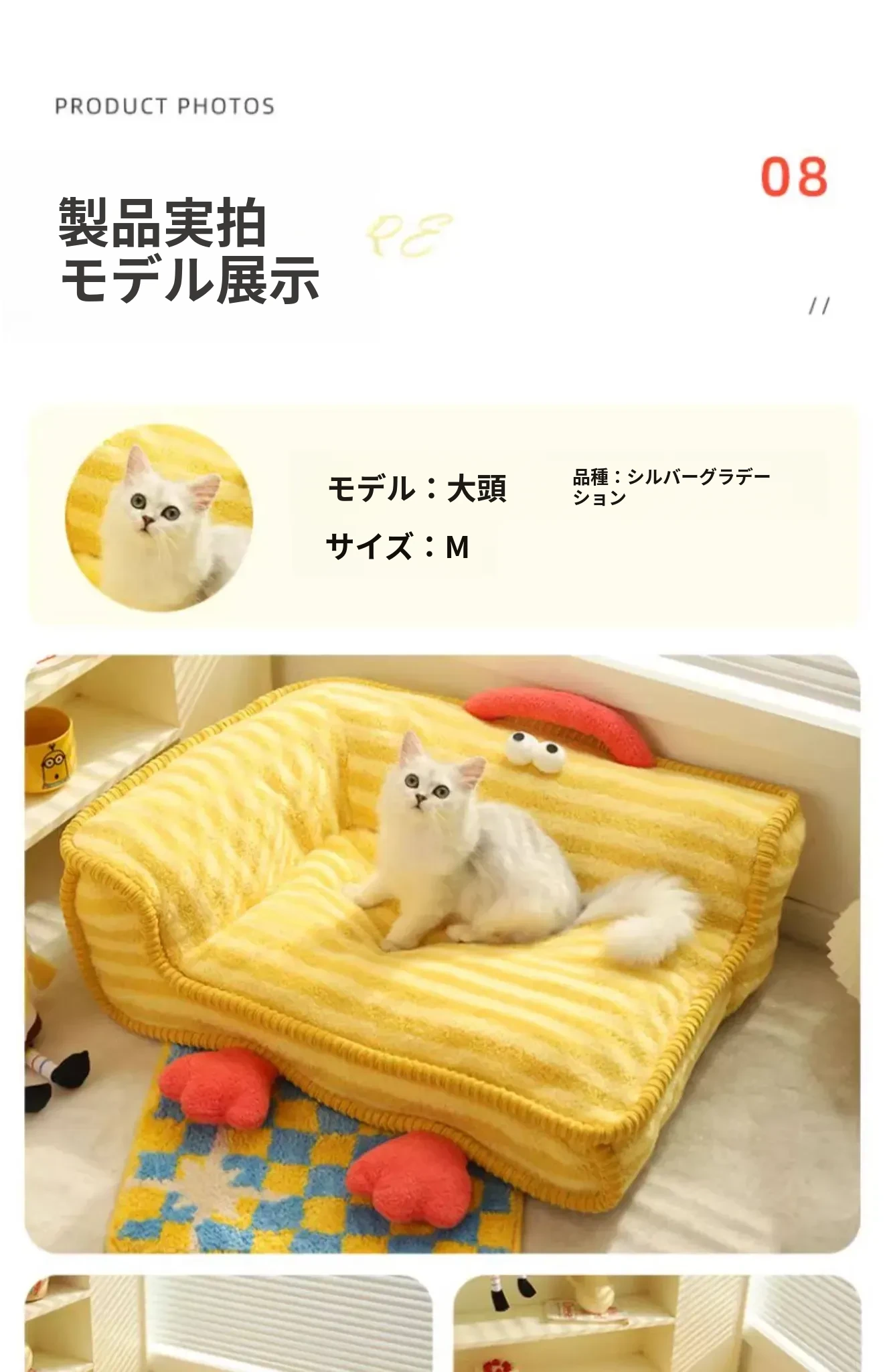 冬の寒さに最適!多頭飼い向け大サイズ猫ハウス - 暖かいペット用マットで、四季を通じて使える快適な猫ソファ気分をお届けします!