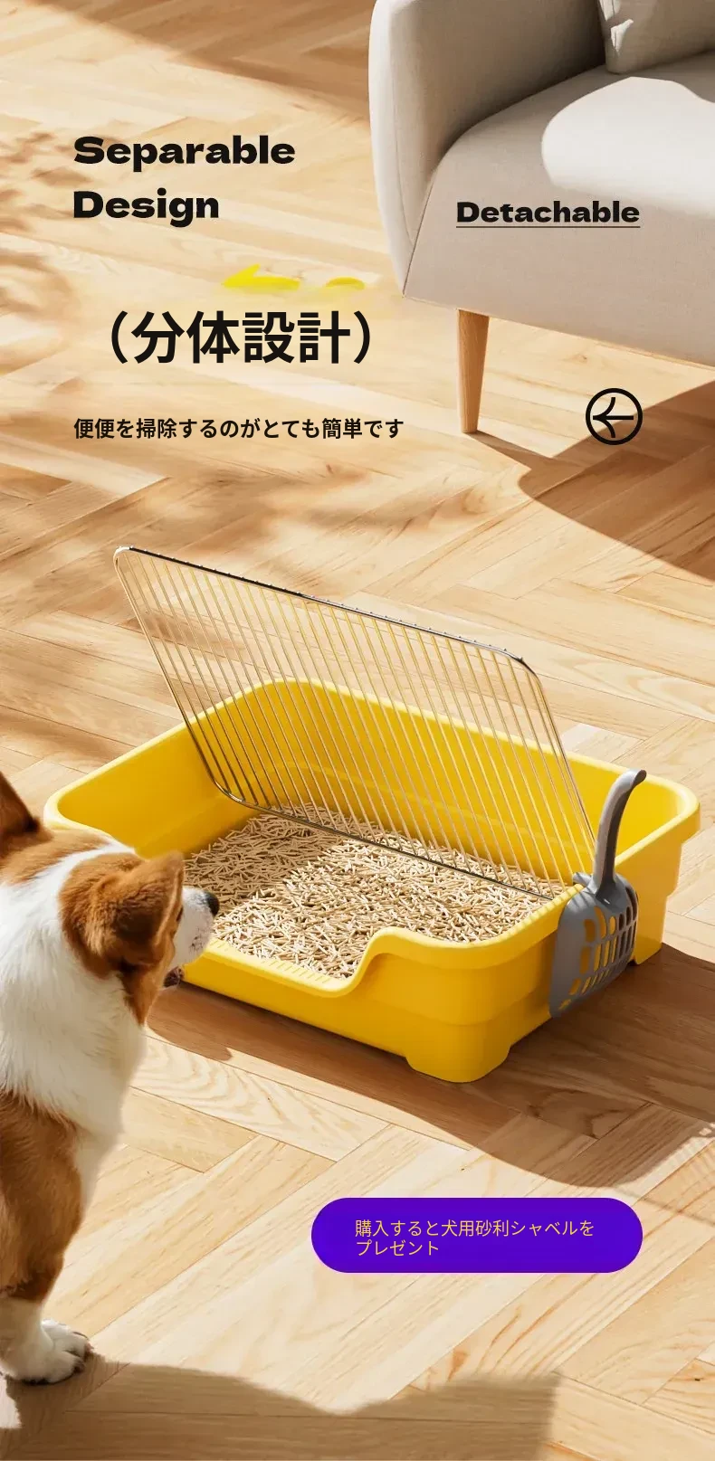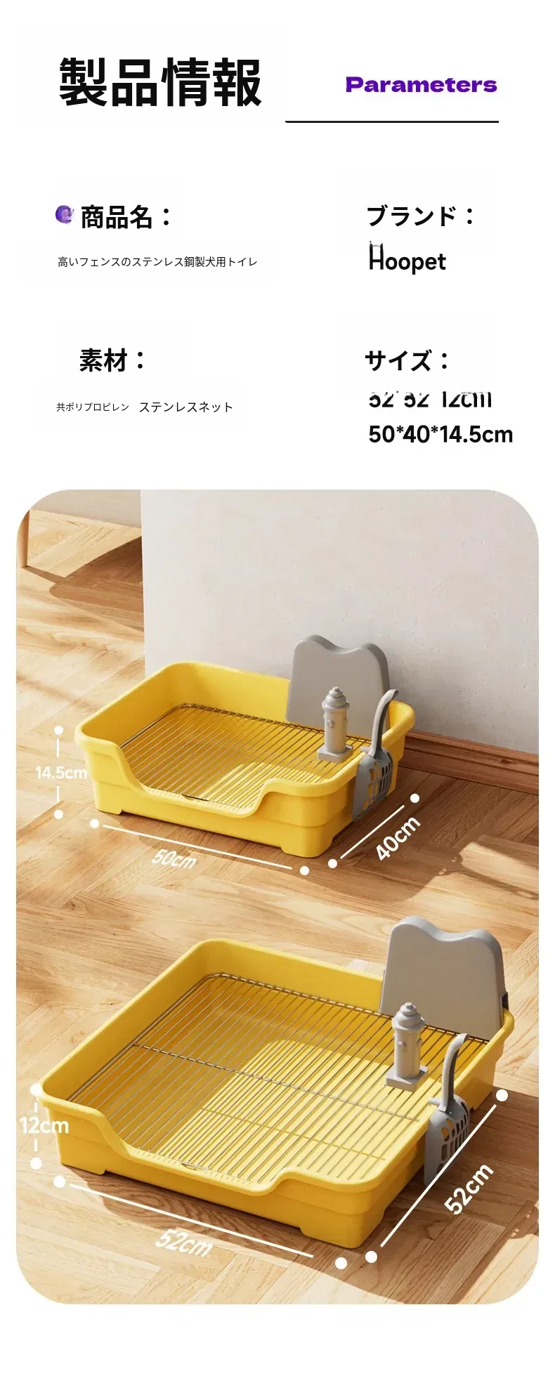 【超大号52*52cm】高囲い犬用トイレ-間隔22mm(11-15斤適用)