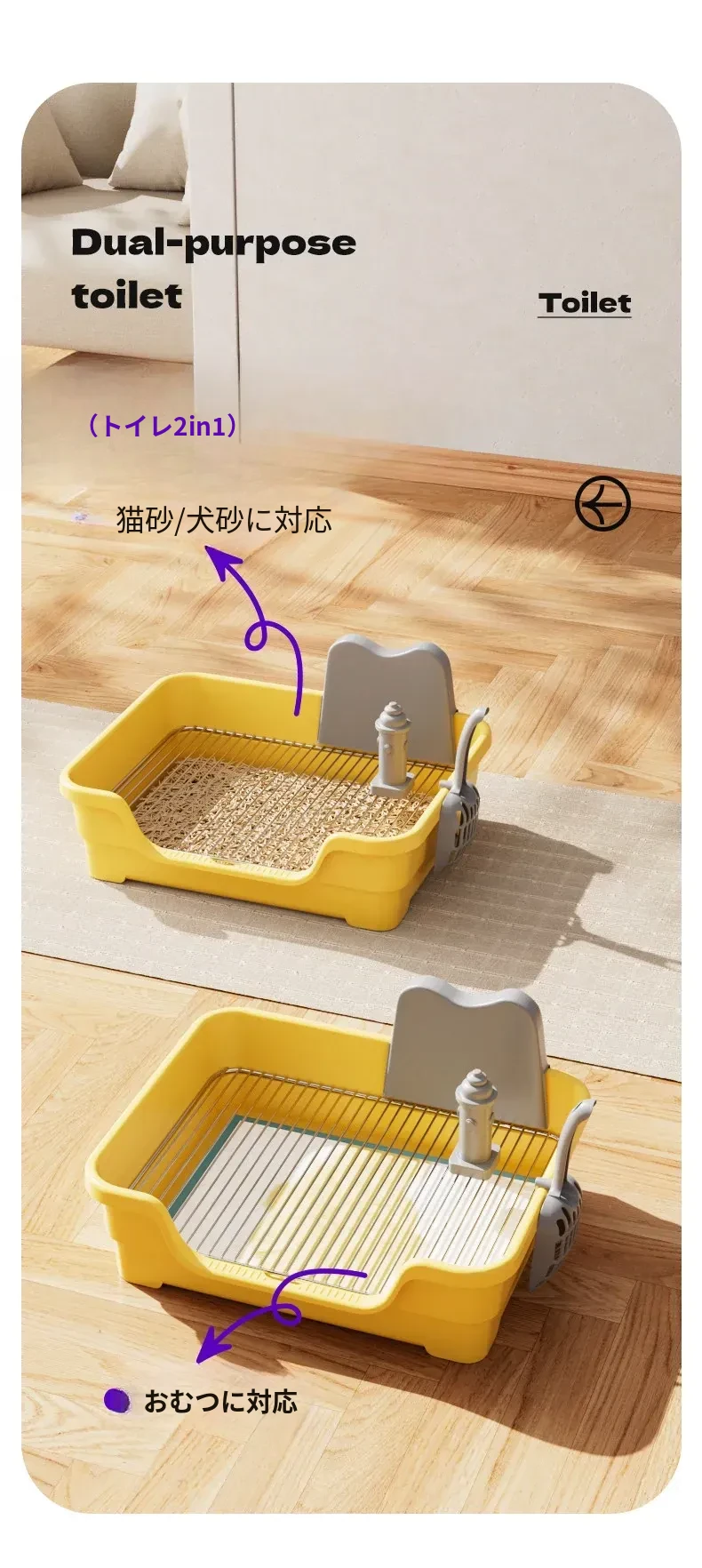 【大号51.5*38cm】ギャラクシーグレー高囲い犬用トイレ-18mm