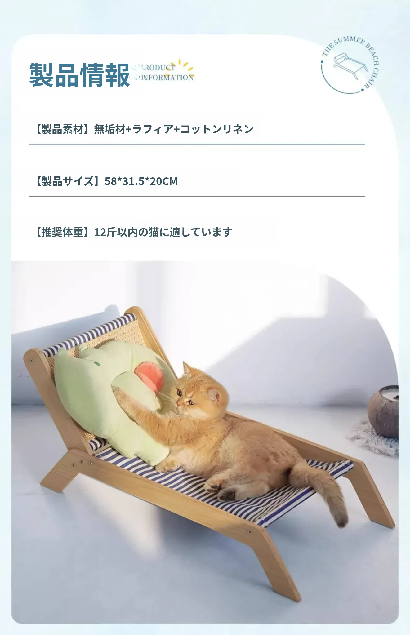夏にぴったりの猫用ソファ!湿気を防ぎ、四季通用の快適な猫ベッド。地面から離れたデザインで、猫ちゃんもリラックス。爪とぎ付きで遊び心満載!あなたの愛猫に最適な涼しさを提供します。