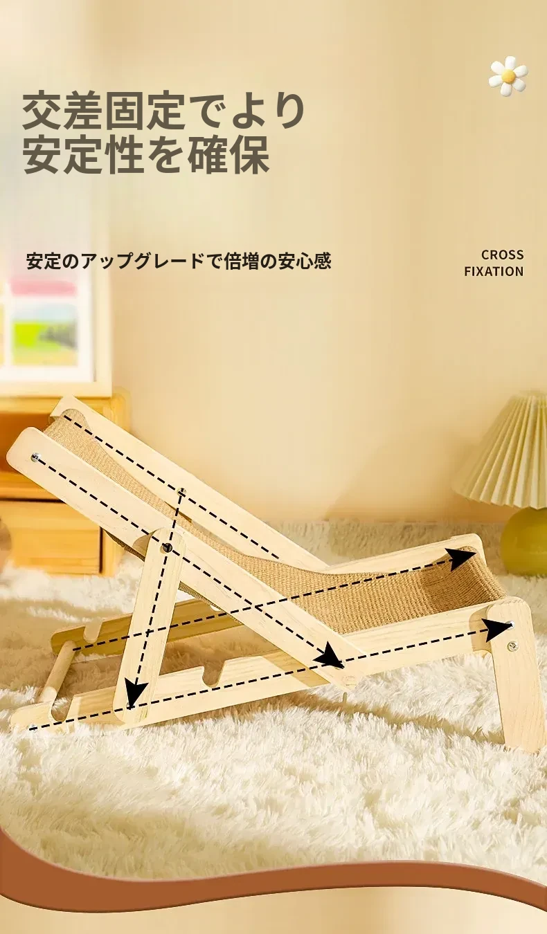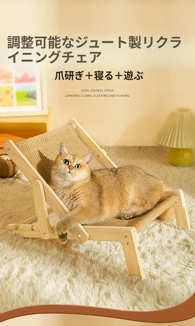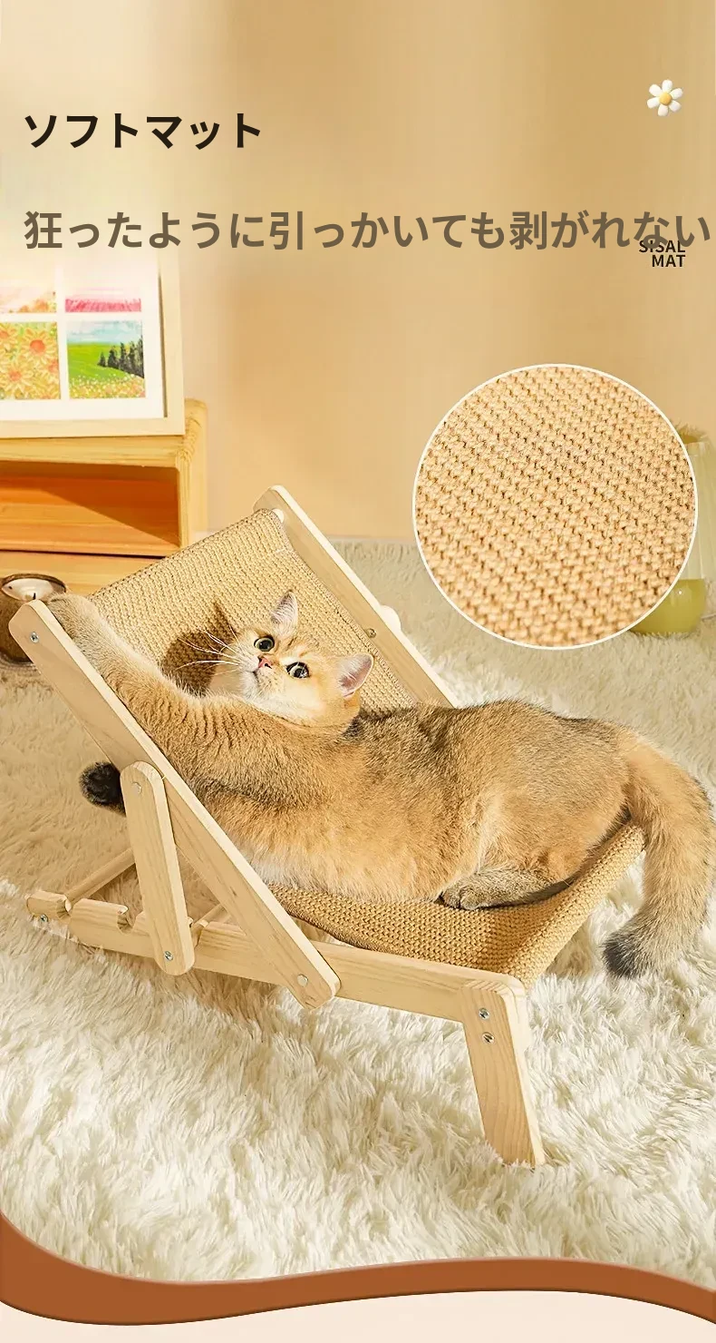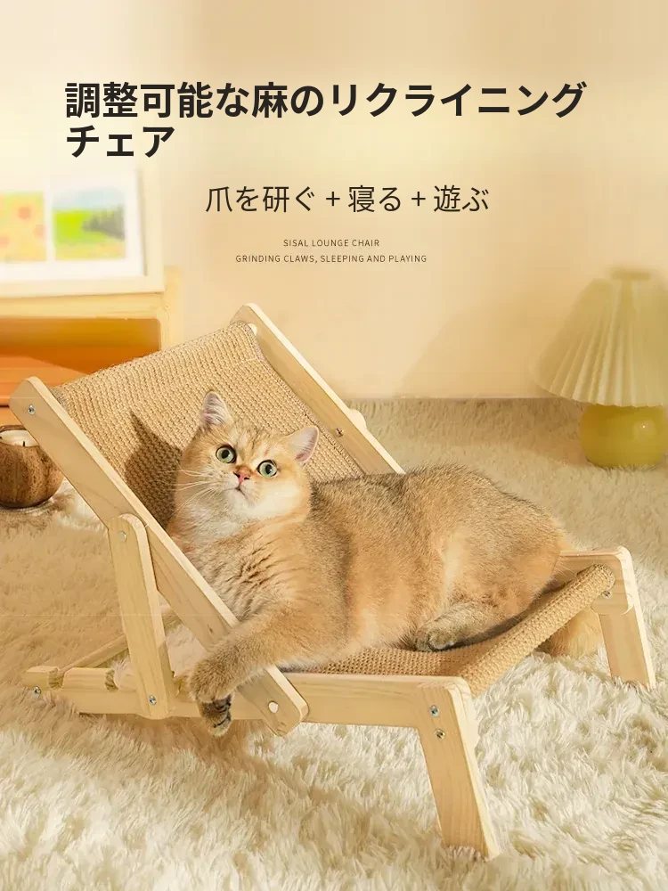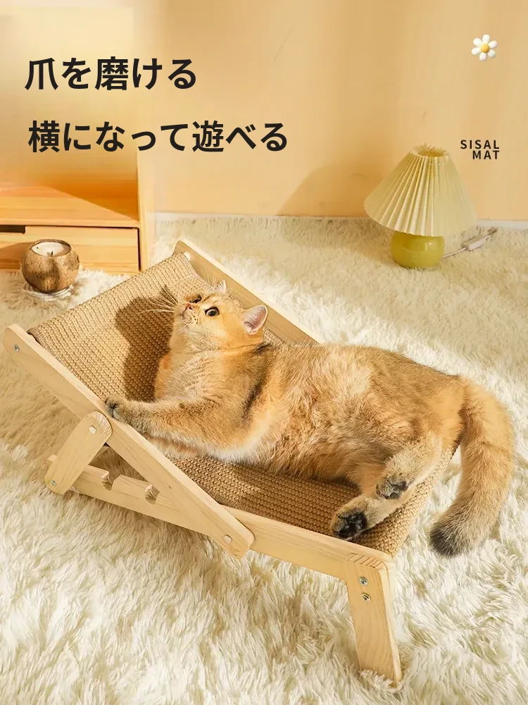 【四季通用】猫のベッド・ソファ - ビーチチェアタイプ ジェット麻で爪とぎ可