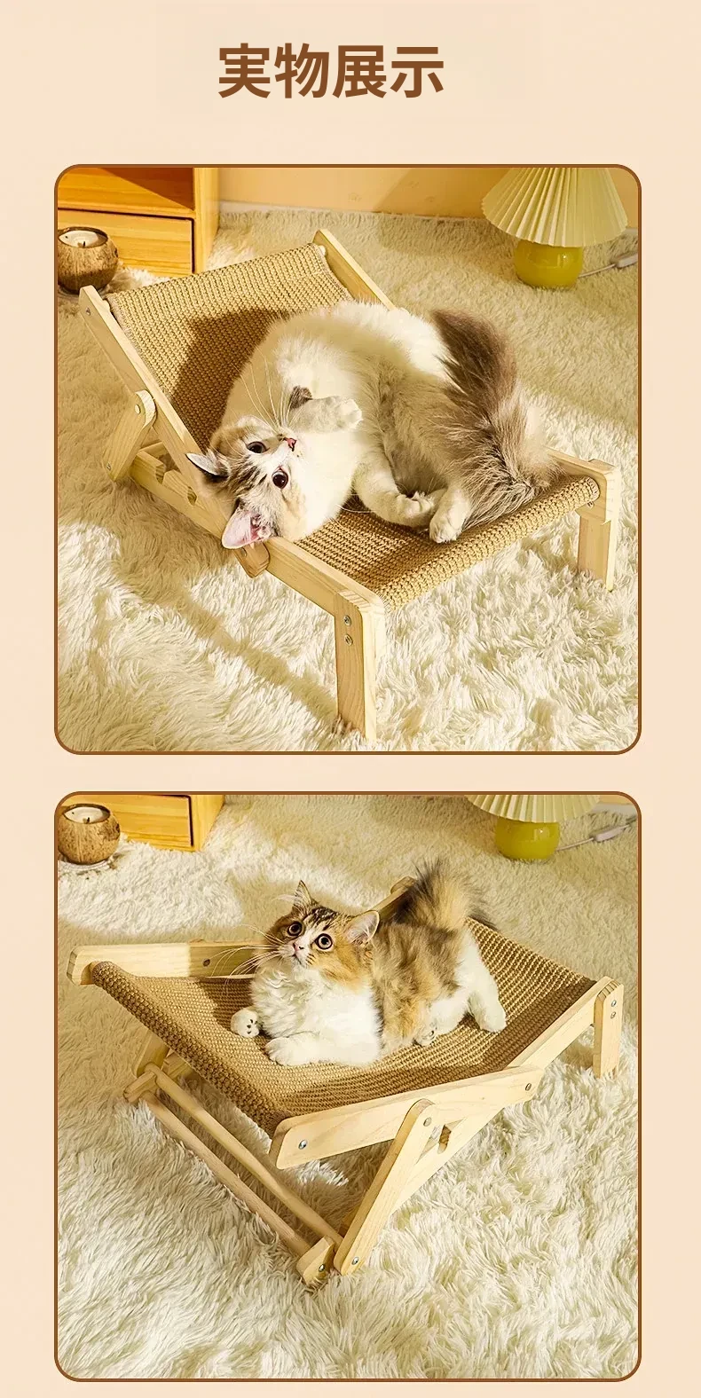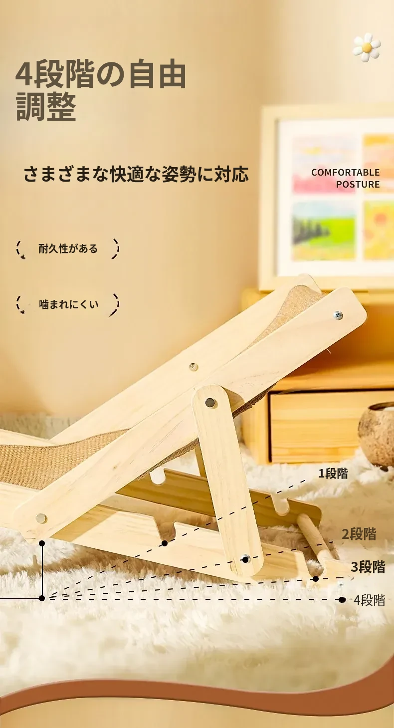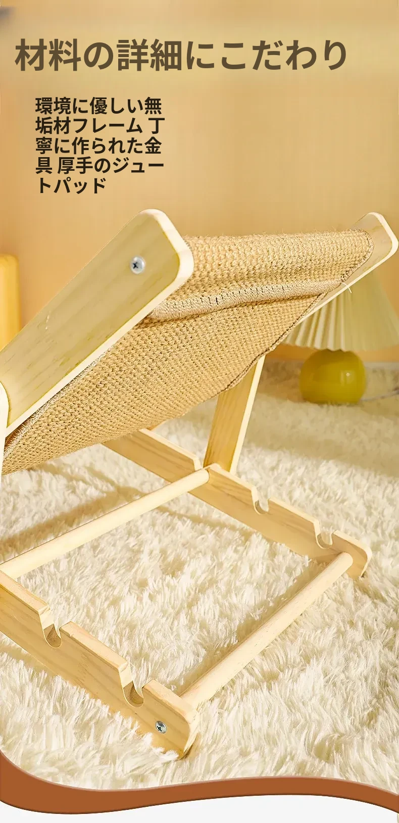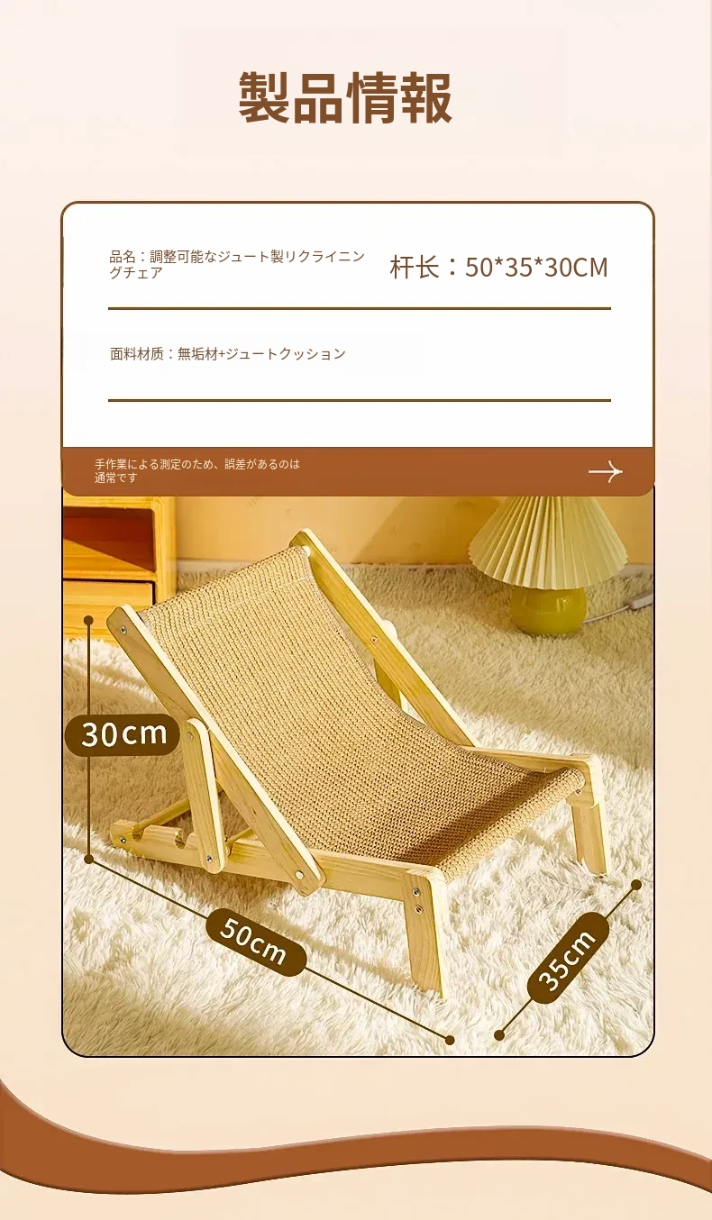 【四季通用】猫のベッド・ソファ - ビーチチェアタイプ ジェット麻で爪とぎ可