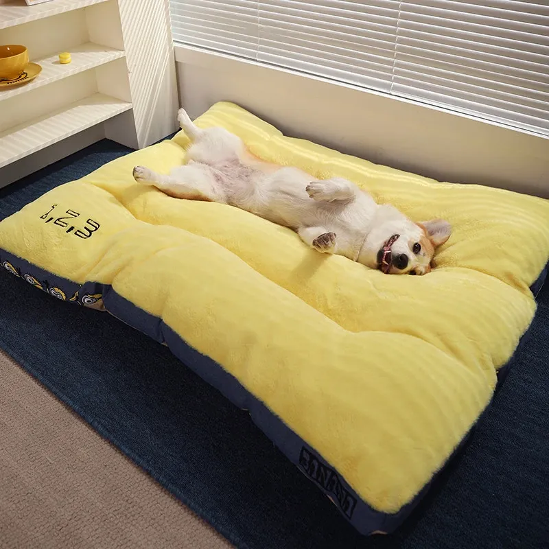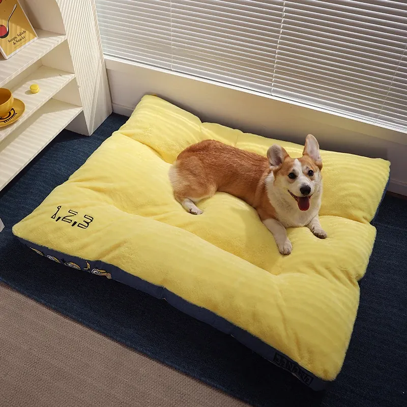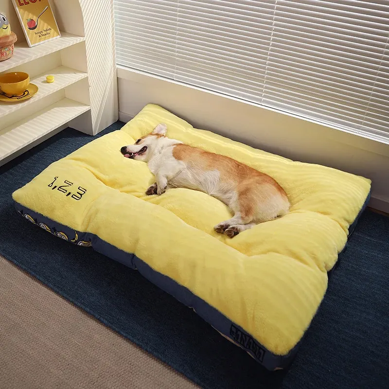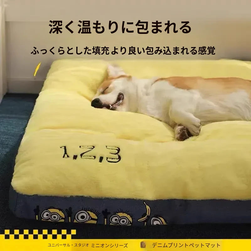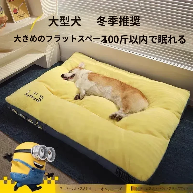小さなミニオンデザインの犬用ベッド!四季に対応した大型犬用マット、ゴールデンレトリバーやコーギーにも最適。取り外し可能なカバーで洗濯も簡単、冬の寒さから愛犬を守ります!快適な眠りを提供する最高の選択です。