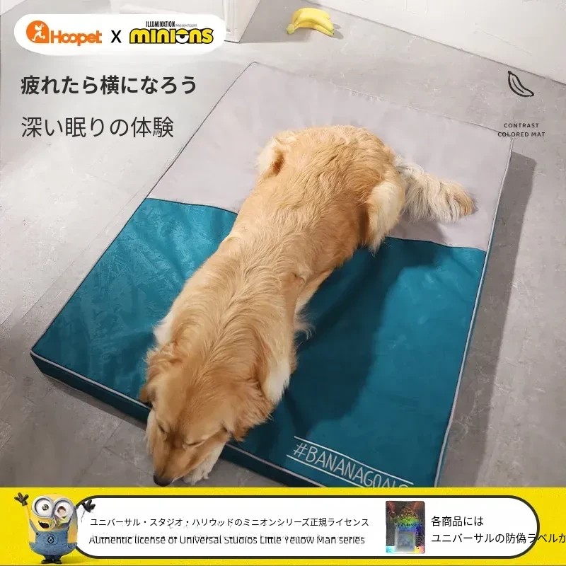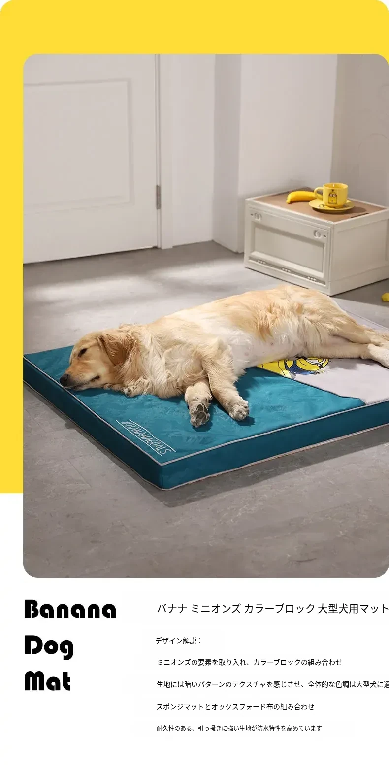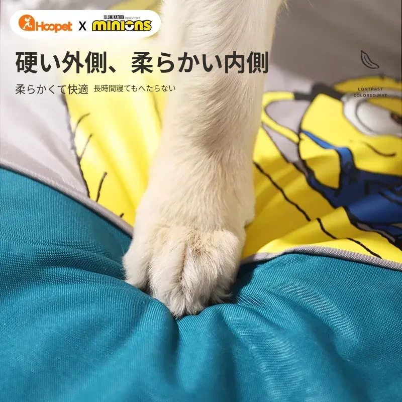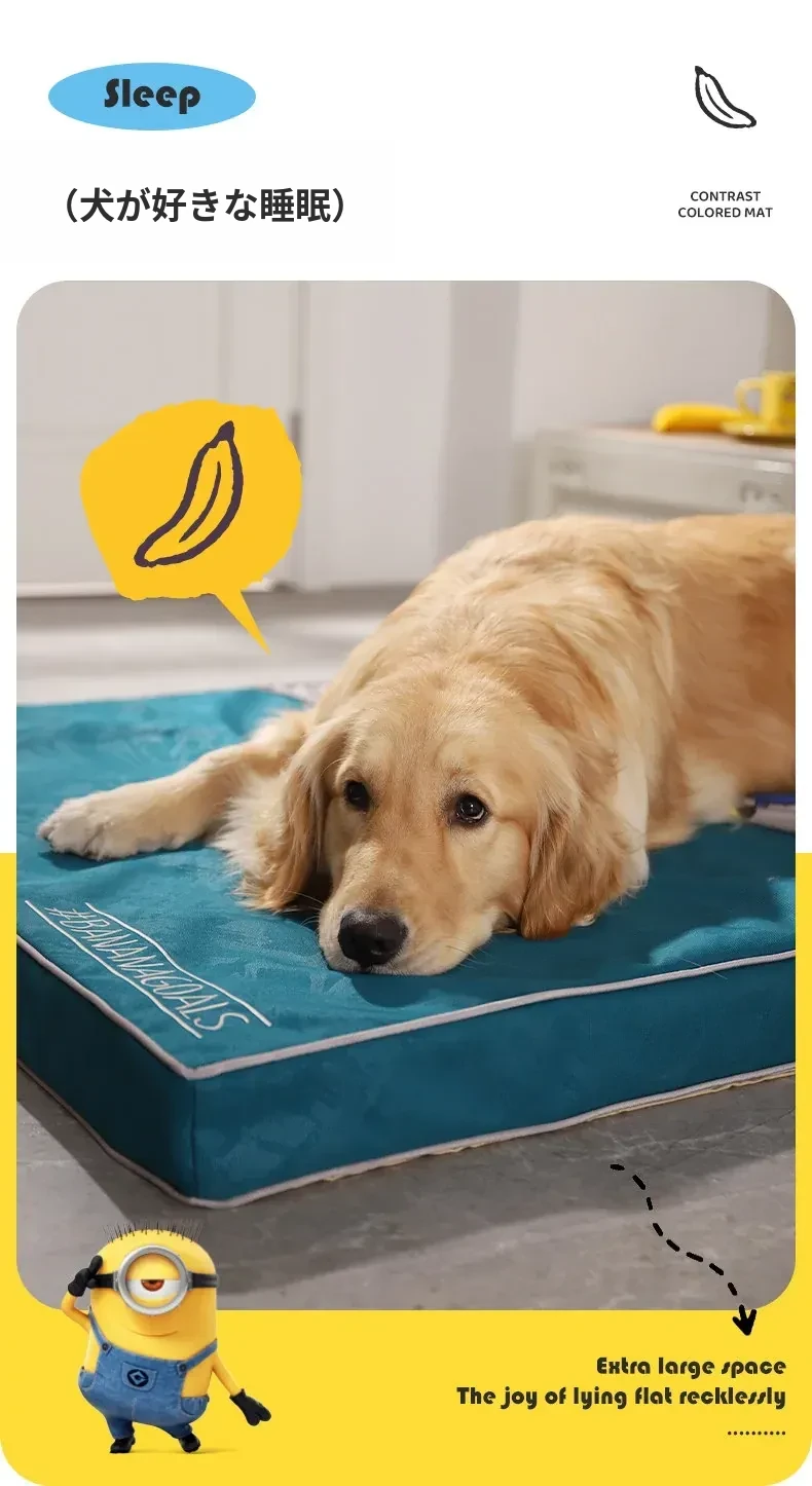 かわいいミニオンデザインの大型犬用ベッド!金毛にぴったり、四季通用で夏は洗える涼感マット付き。愛犬のための快適なソファ型ペットベッドで、リラックスした眠りをサポートします!