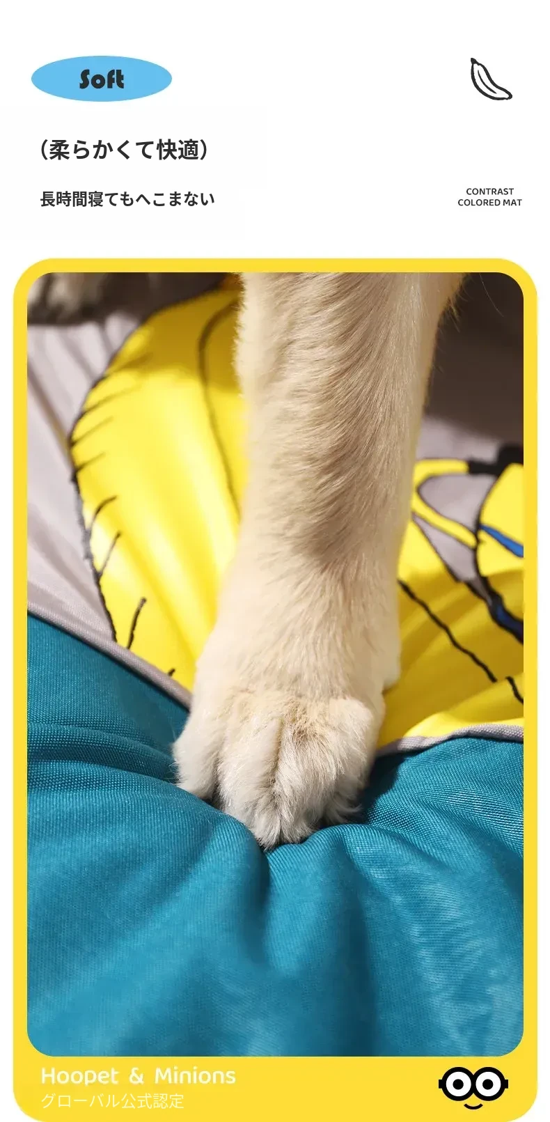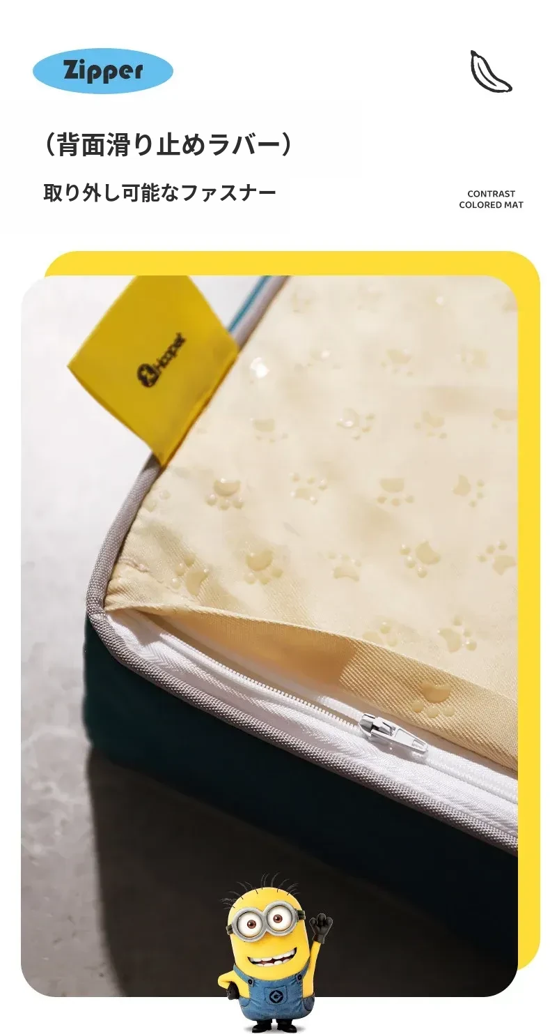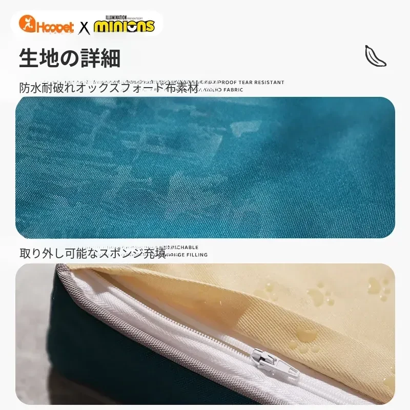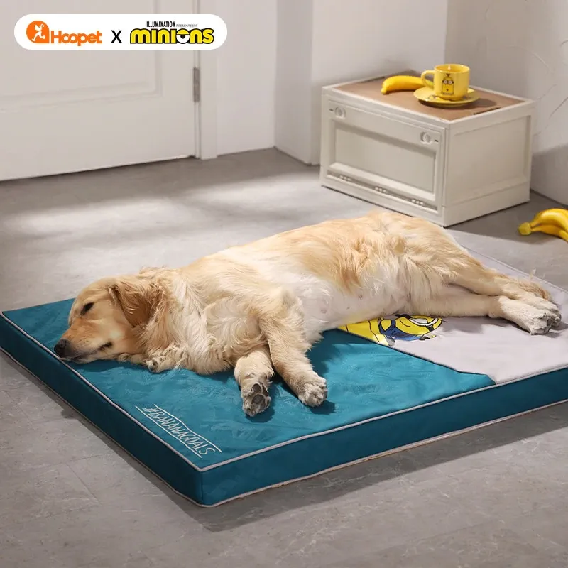 かわいいミニオンデザインの大型犬用ベッド!金毛にぴったり、四季通用で夏は洗える涼感マット付き。愛犬のための快適なソファ型ペットベッドで、リラックスした眠りをサポートします!