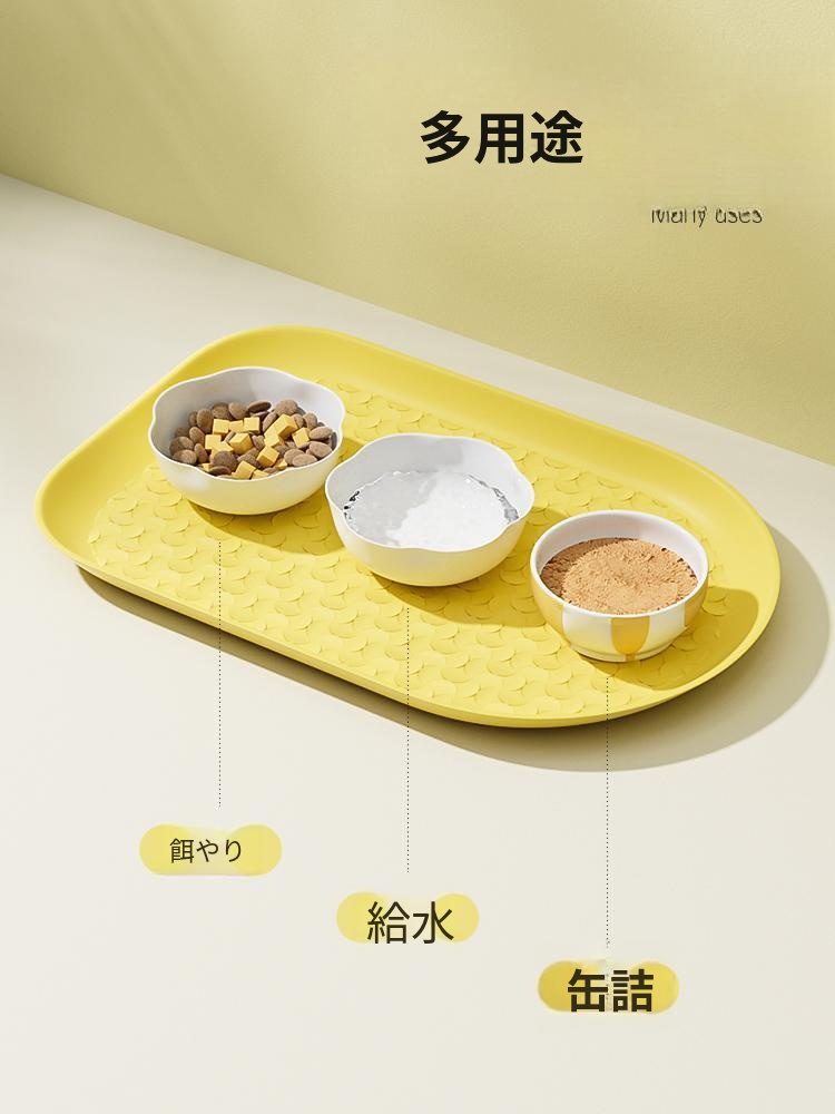 防水・滑り止め機能付きペット用食事マット|犬や猫が安心して食べられる、ひっくり返らない食器トレー|小さな子猫にも最適な食事マット