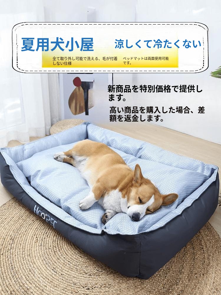 四季対応!コーギー用洗えるドッグベッド - 中型犬・フレンチブルドッグも快適な夏用ペットマット!涼しさと清潔感を両立した理想の寝床。