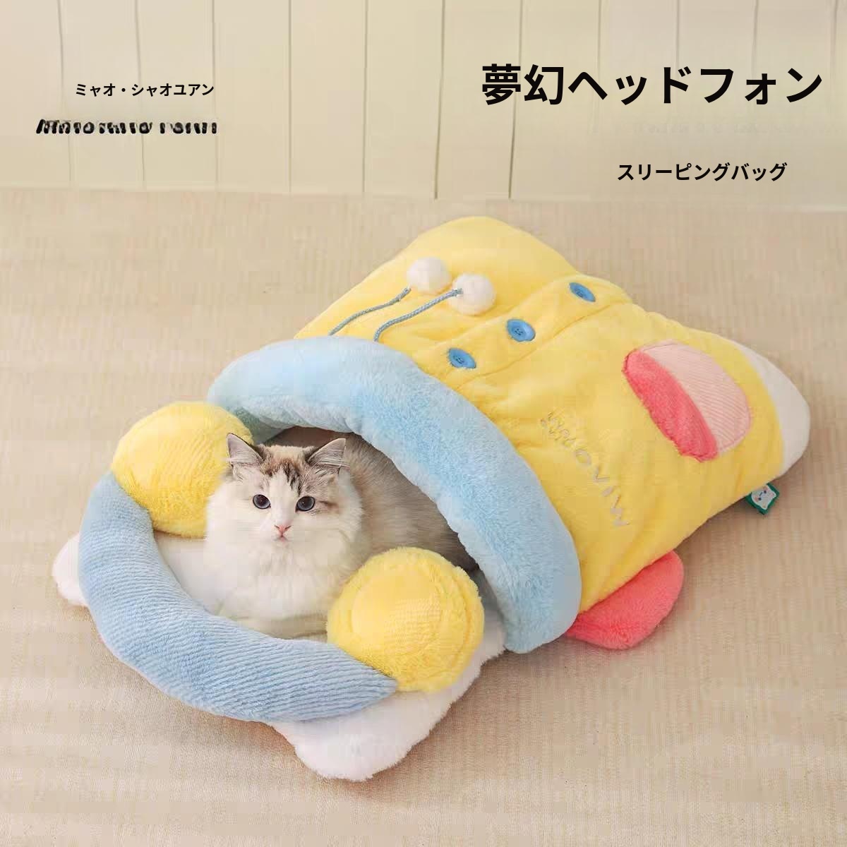 にゃんこ用冬のあったか寝袋!閉じたデザインで安心感抜群のペット用ベッド。小猫や小犬にぴったりの四季対応の快適空間。寒い季節も安心してぐっすり眠れる、愛するペットに最適なアイテム!