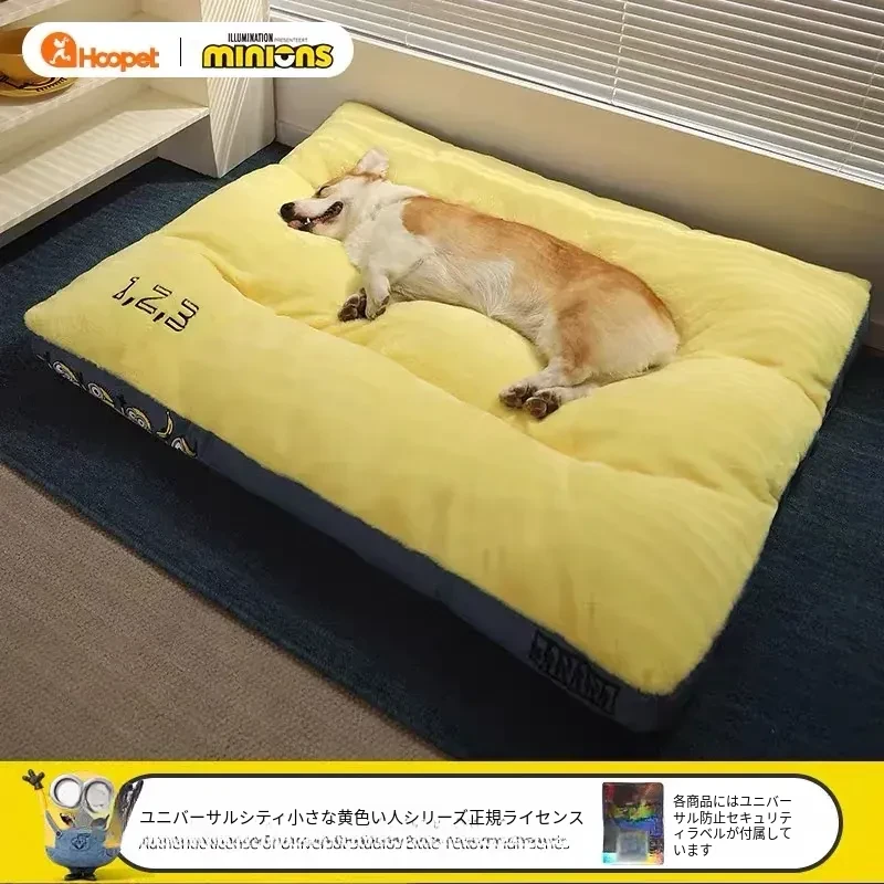 ミニオンコラボの犬用ベッド!四季通用、大型犬にも最適なゴールデンレトリバーやコーギー用。洗濯可能で冬場も暖かい、快適な犬用マットです。愛犬のための最高の居場所を提供します!