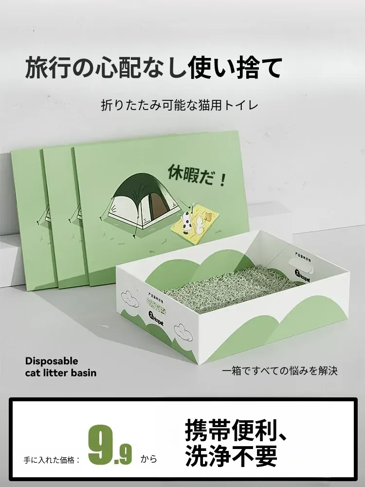 使いやすい!大型折りたたみ式の使い捨て猫トイレ - 外出時も安心の防水設計で、猫ちゃんが快適に用を足せる全開放型!携帯にも便利で、清潔な環境を保てます。