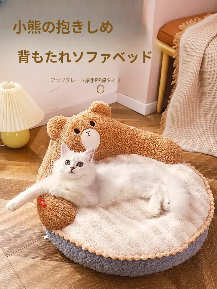 四季対応!ふわふわの猫ベッド - 小さな猫ちゃんのための安心感と暖かさを提供するペット用ソファ!冬でも快適に眠れる、愛猫のための最高の寝床です。