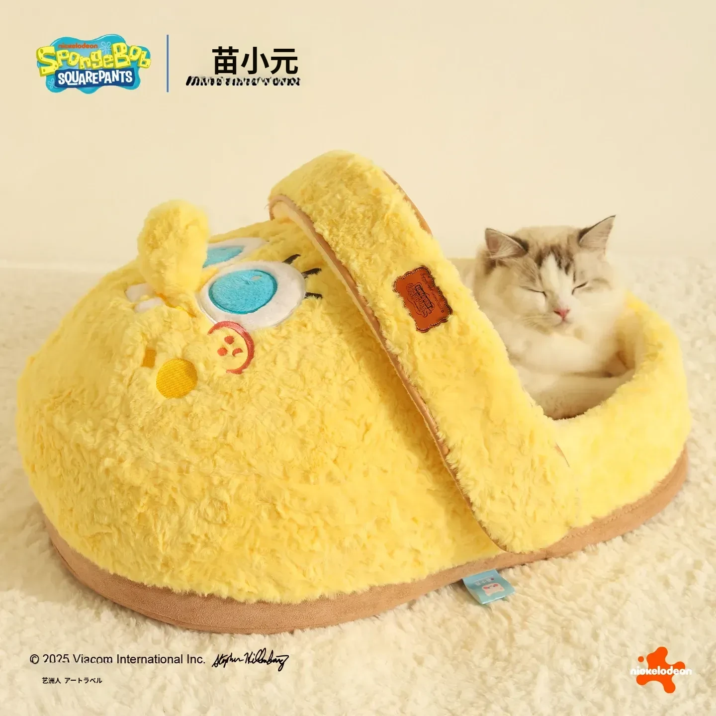 スパンボブコラボ猫ハウス!安心感を提供する封閉式デザインで、冬の暖かさを保ちます。四季通用の快適な猫テント、愛猫のための特別な寝床をお見逃しなく!
