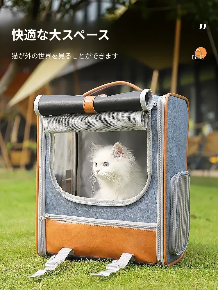 猫と犬のためのストレスフリーなペットキャリーリュック - お出かけに最適な便利な猫用バックパック!猫ちゃんも快適に過ごせるデザインで、愛するペットとの外出をもっと楽しく!