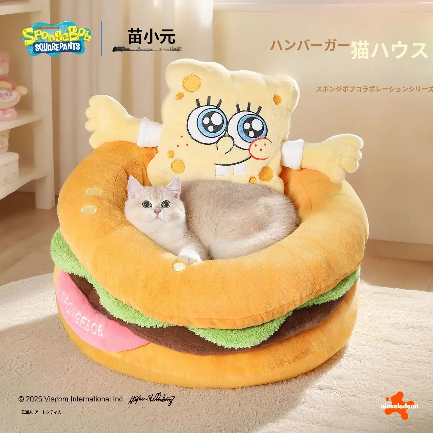 ニャー小元 スポンジボブコラボ ハンバーガーベッド 四季通用 子猫・子犬用 睡眠マット 洗えるドッグベッドで快適なお昼寝を!