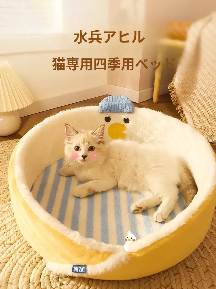 四季対応!猫ちゃん用の安心お昼寝ベッド - 冬も暖かい!小型犬にも最適なふかふかペットマット。寒い季節にぴったりの快適な眠りを提供します。