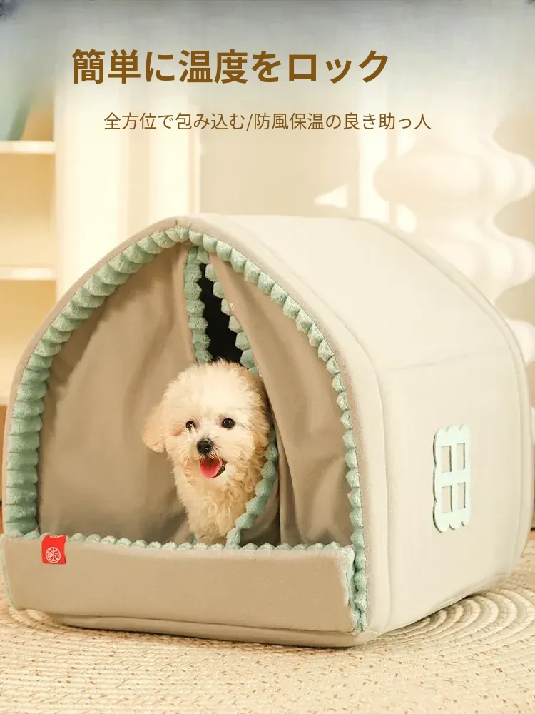 小型犬に最適!ペット用加厚犬小屋 - 四季通用、冬の寒さも安心!半封閉式デザインで愛犬の安全感をアップ。快適な空間を提供するテント型ハウス!
