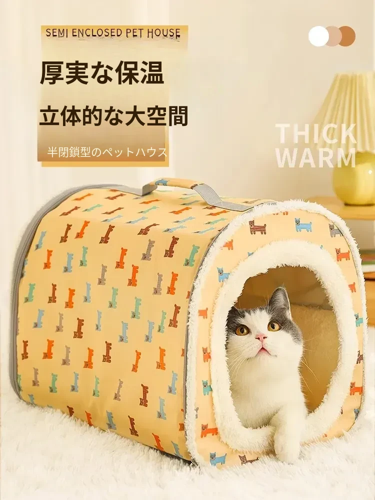 四季対応!半封閉式子猫用隠れ家 - 安全感たっぷりの猫ベッド、冬も暖かい猫ハウス。あなたの愛猫にぴったりの快適空間を提供します!