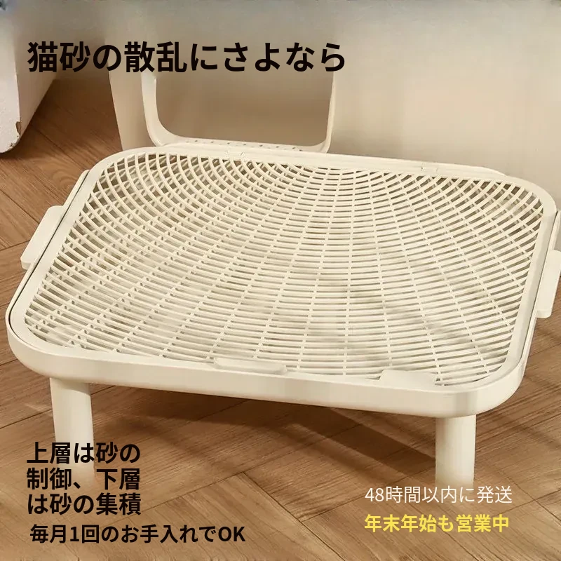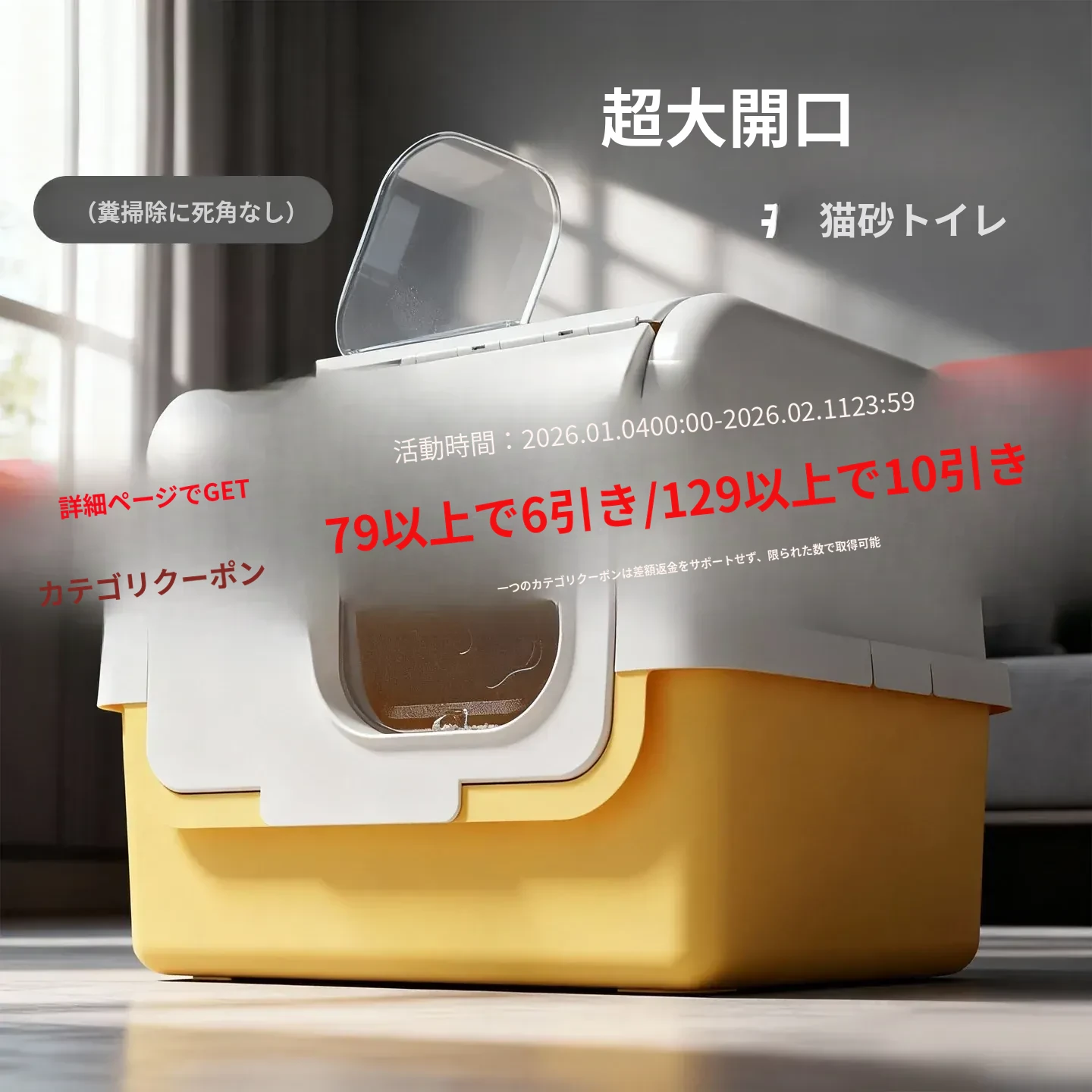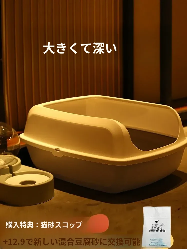 超大型猫砂盆!防外溅设计で、猫ちゃんが快適に使えるオープンタイプ!特大サイズで半閉鎖式、清掃も簡単。愛猫のための理想的なトイレ用品です!