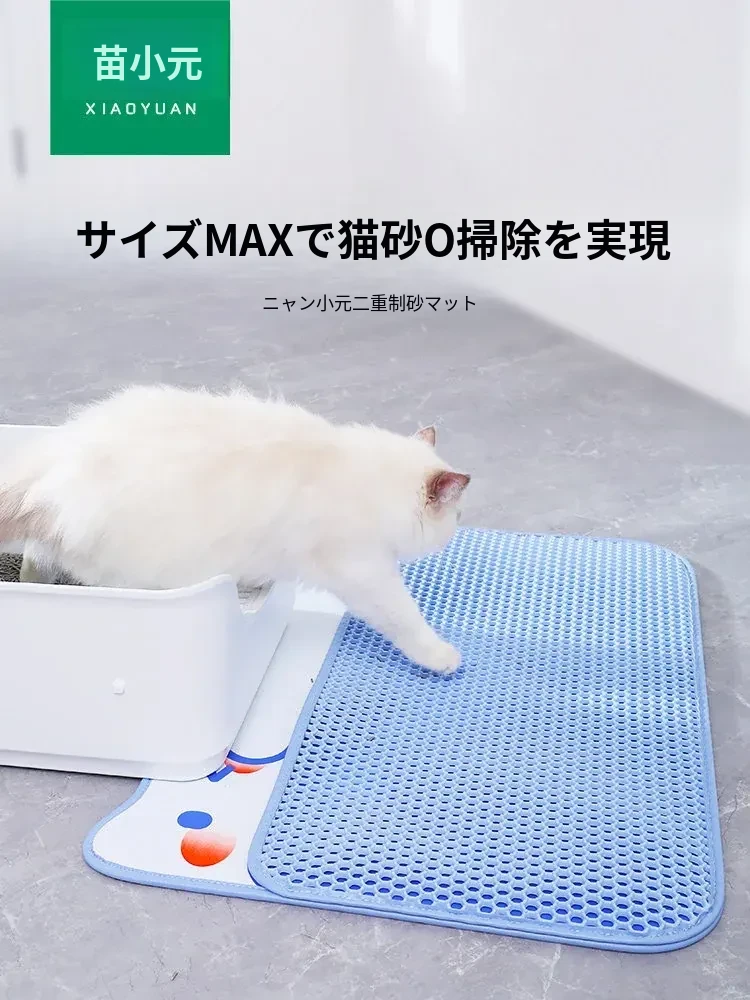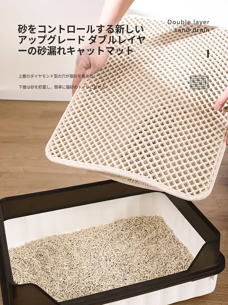 超大サイズのペット用キャットトイレマット|2層構造で砂が飛び散らず、持ち出し防止機能付き|フィルター&漏れ防止設計|洗える便利なアイテムで、愛猫の快適な生活をサポート!