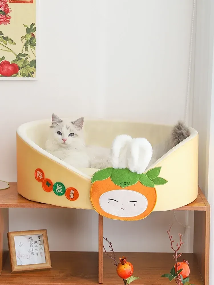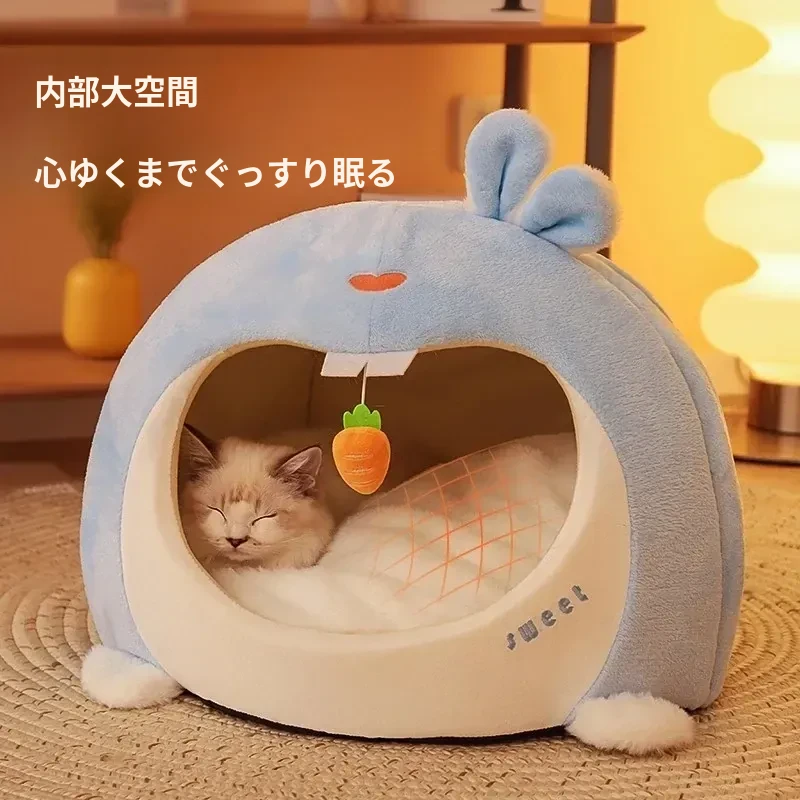 四季対応!愛猫のための快適な猫ハウス - 冬でも暖かいペットベッド!小型犬にも最適な寝床、ふわふわのマットで心地よい眠りをサポートします。あなたの大切なペットに最高の快適さを提供しましょう!