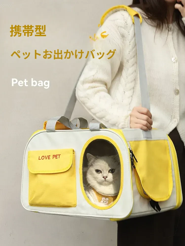 ミニオンコラボ猫用バッグ - お出かけにぴったり!通気性抜群でストレスフリー、愛犬や愛猫と一緒に楽しい時間を過ごせるショルダーバッグ。小型犬にも最適なペットリュック!