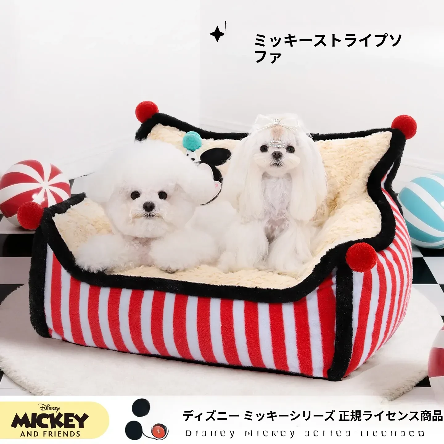 ディズニー ミッキー ストライプ ソファ型犬用ベッド 冬の暖かい寝床 犬猫用マット 四季通用の快適なペットハウス!あなたの愛犬・愛猫にぴったりの可愛いおしゃれな寝床で、心地よい眠りを提供します。