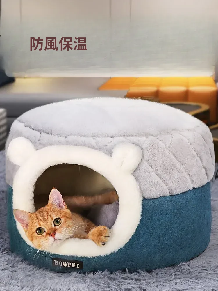 猫ちゃんが安心してくつろげる!四季対応の暖かい封閉式ペットベッド - 冬でも暖かい厚手タイプのキャットハウス&スリーピングバッグ。快適で安全な空間を提供します!