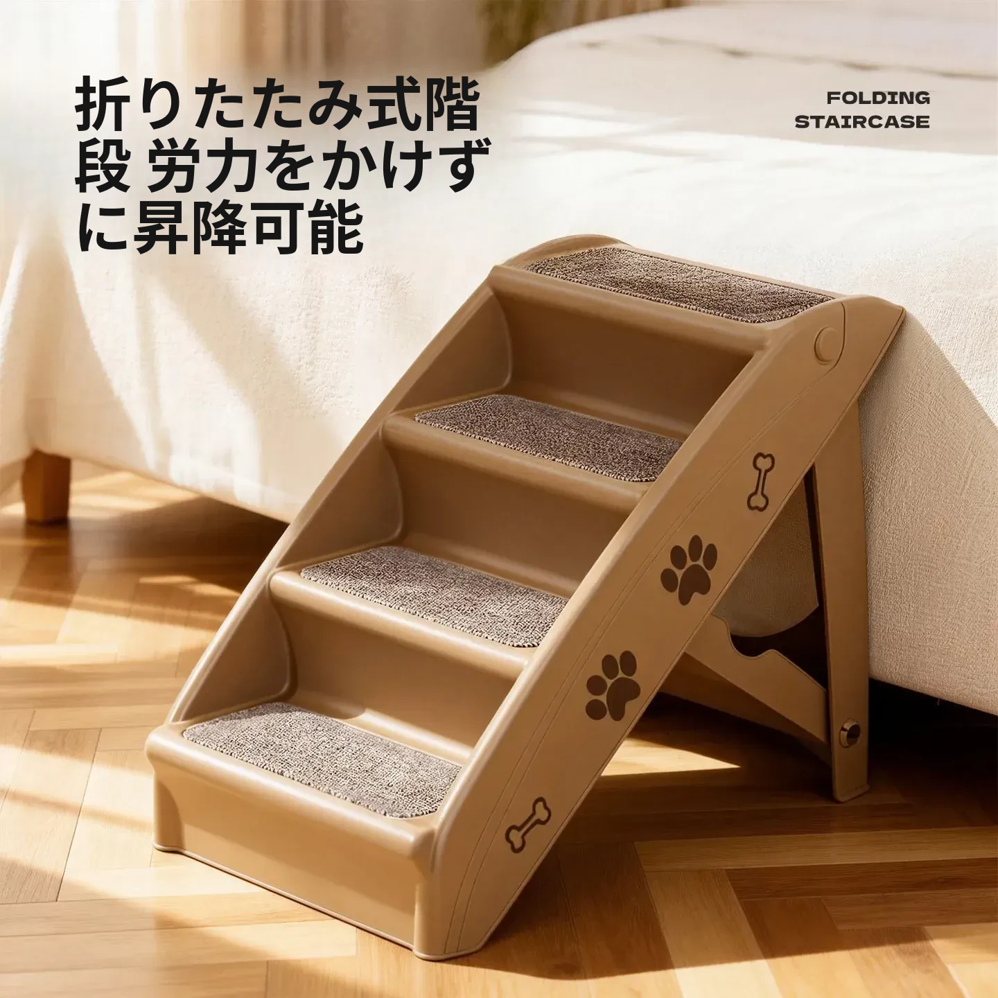 ペット用滑り止め階段!小型犬や老犬も安心して上れる、ベッドやソファに簡単アクセス!愛するペットのために、快適で安全な移動をサポートします!