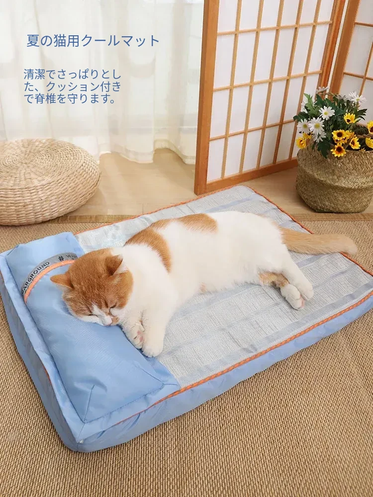 夏でも快適!四季兼用猫用クールマット - 猫と犬のための涼感寝具、夏の必需品!ペットが心地よく眠れる猫ベッド。