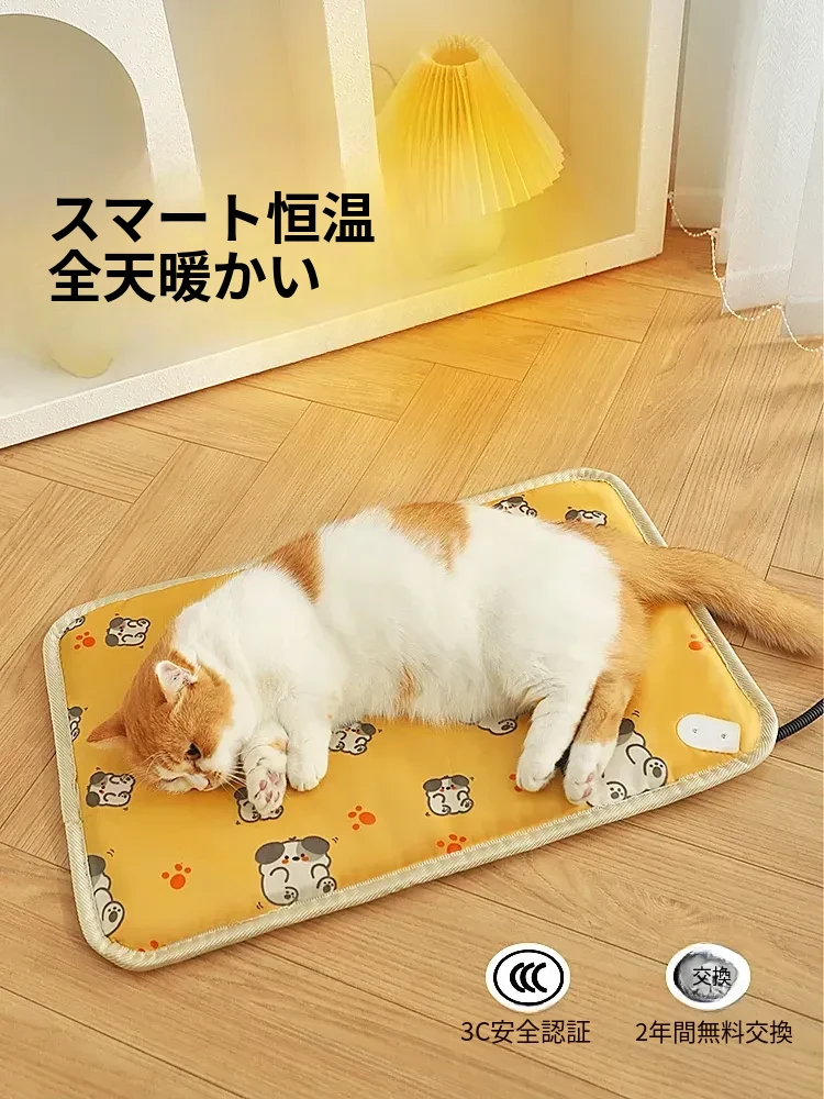ペット用電気毛布 猫・犬用加熱マット 温度調節機能付き ベッドとしても使える暖かい冬の必需品!寒い季節に最適なペットの快適空間を提供します。