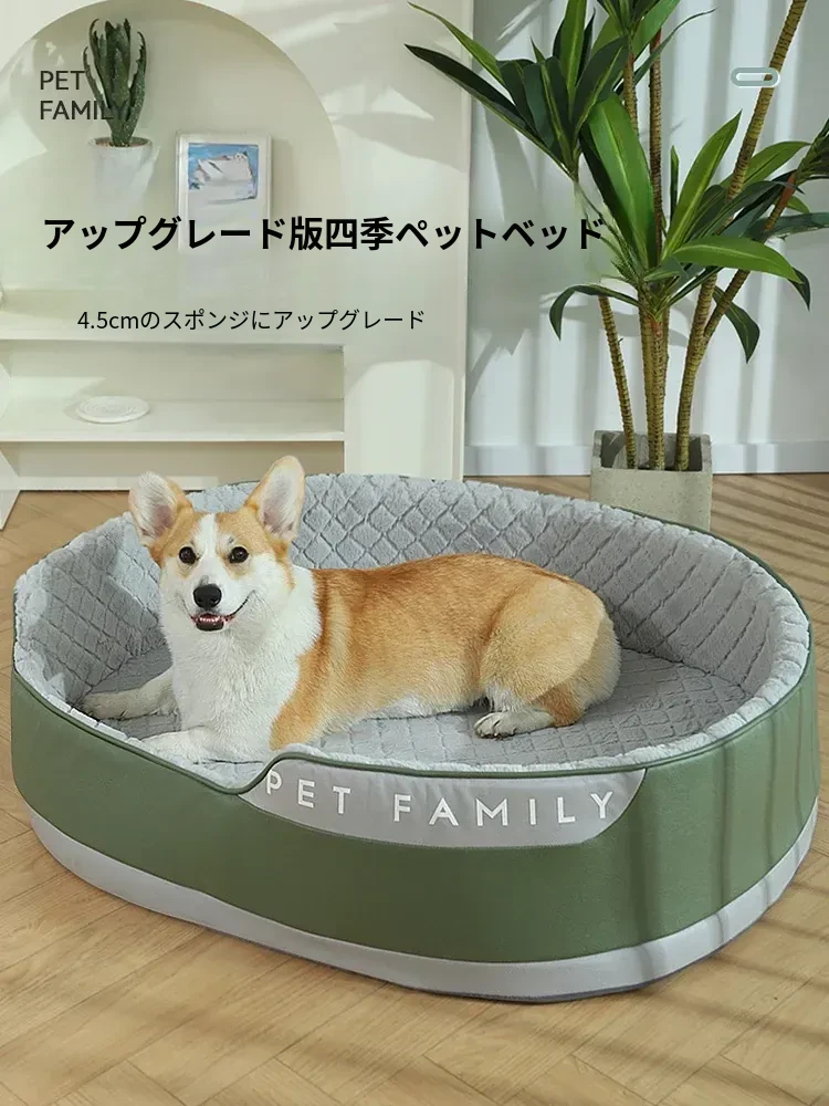 四季対応!洗えるペットソファー - コーギーや猫に最適な快適な寝床。冬にぴったりな小型犬用マットも付いて、愛するペットをしっかり守ります!
