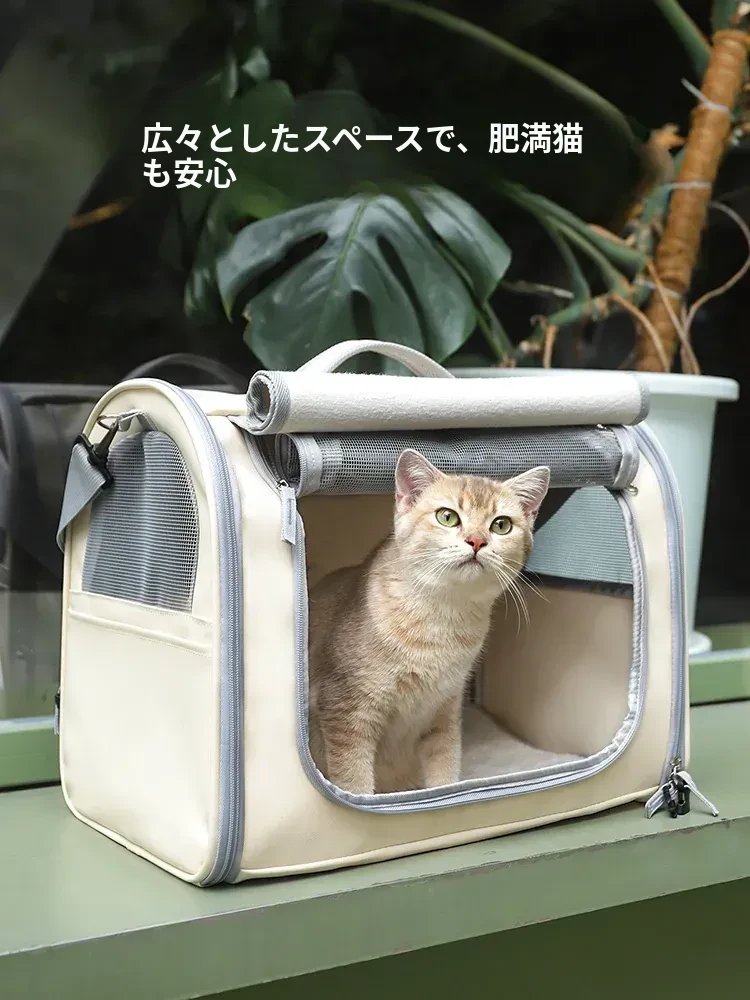 ペットキャリー バッグ - 猫や小型犬に最適!お出かけをもっと楽しくする、便利なショルダー・クロスボディタイプ。大容量でストレスフリー、車載も可能な快適な犬用ベッド付き。あなたの愛犬との素敵な時間をサポートします!