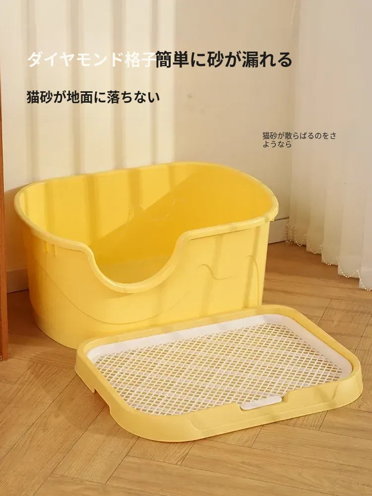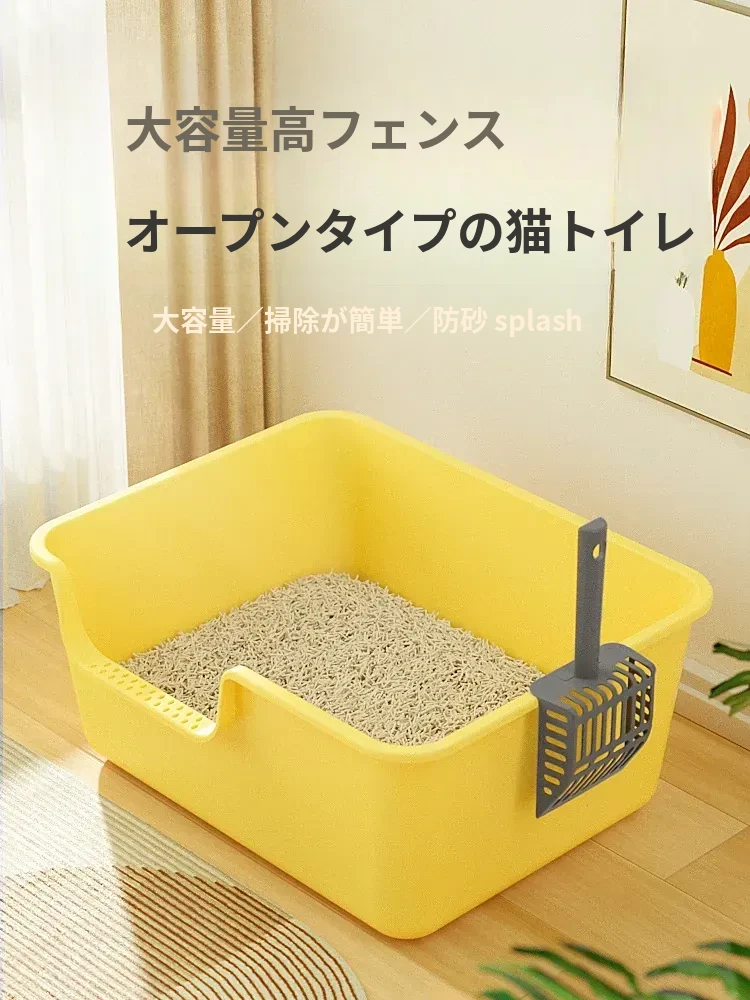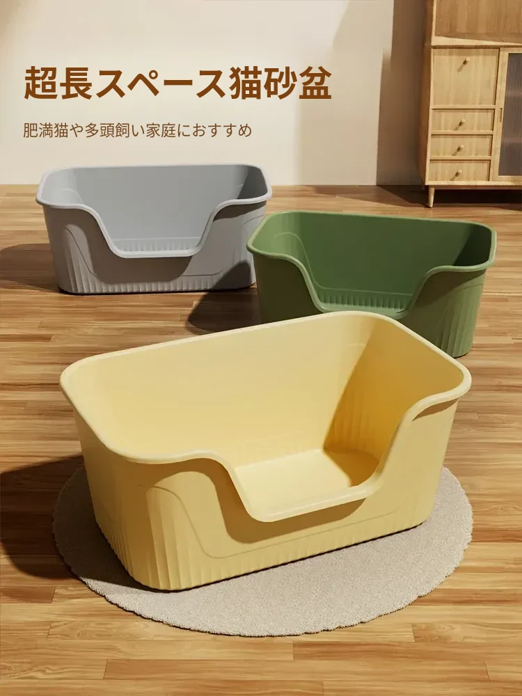 オープンタイプの猫トイレ - 猫砂が飛び散らない安心設計!超大型&小型、子猫にも最適な猫用品。清潔で使いやすい、愛猫の快適なトイレタイムを実現します!
