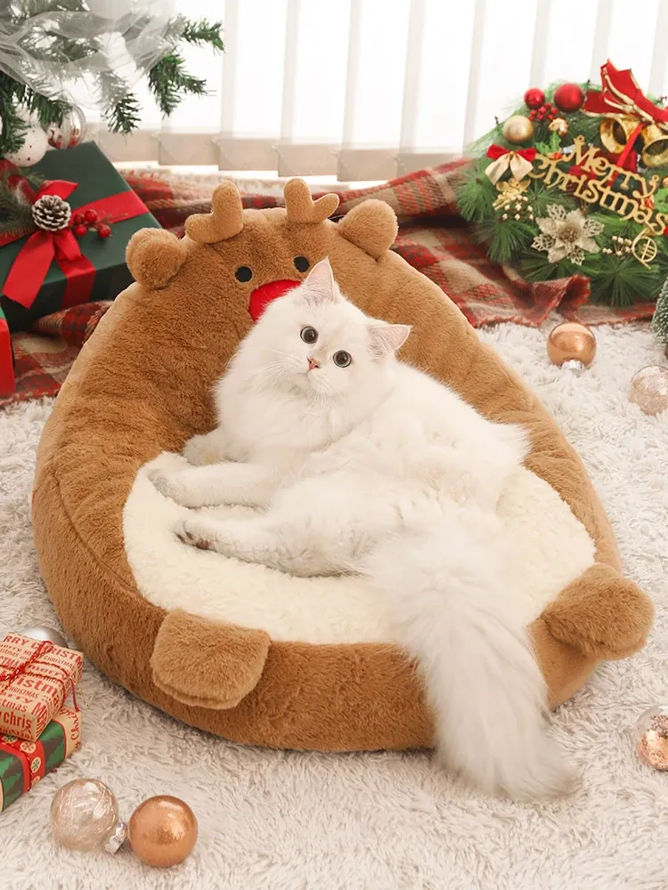 クリスマス猫ハウス - 冬の暖かさを提供する猫用ベッド!愛らしいデザインで、あなたの小さな友達を快適に守ります。寒い季節にぴったりのペット用ソファ、犬も使える冬用ベッド。