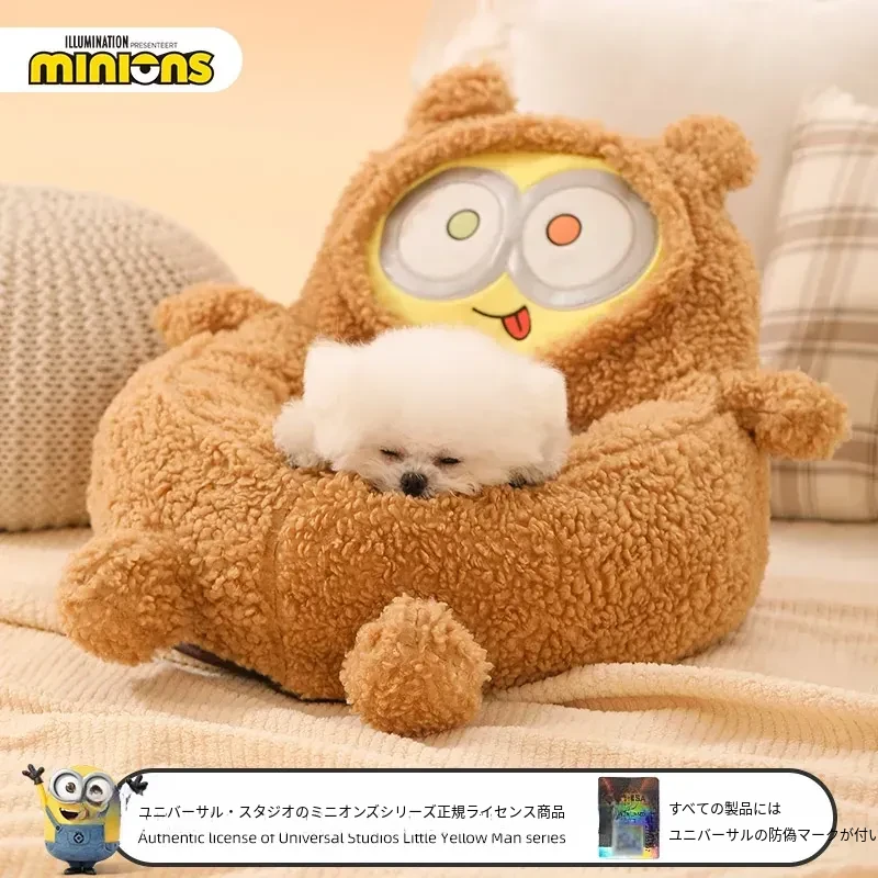 ミニオンデザインの犬用ベッド - 四季に対応!小型犬や猫ちゃんのための暖かくて安全な寝床。冬も快適に過ごせる、愛するペットのための特別な空間を提供します!